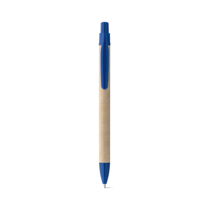 Bolígrafo fabricado en papel kraft con clip. Escritura de color azulRecipiente :