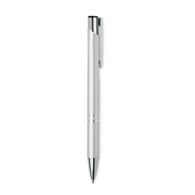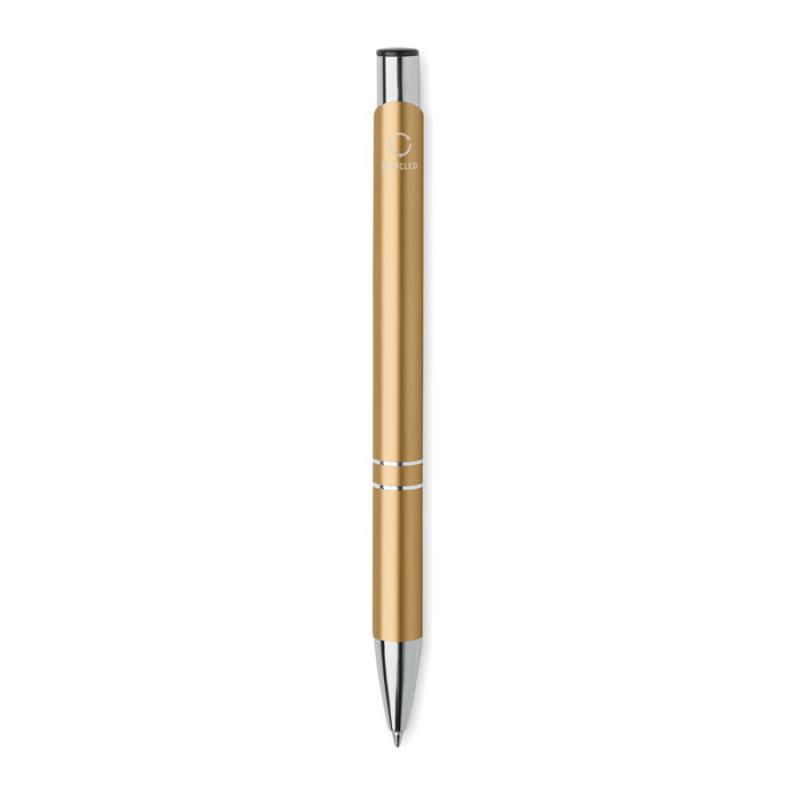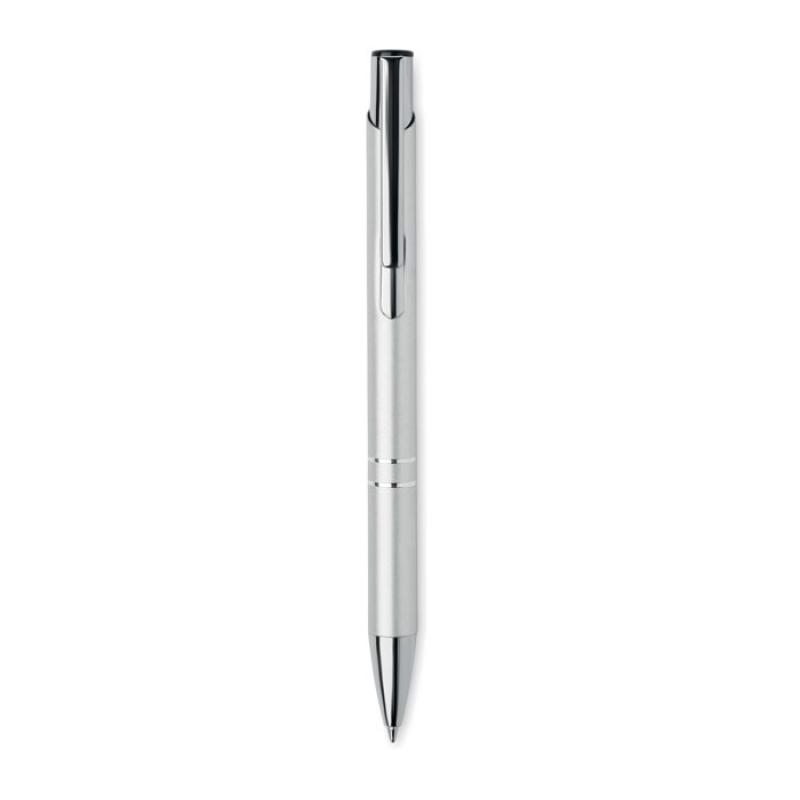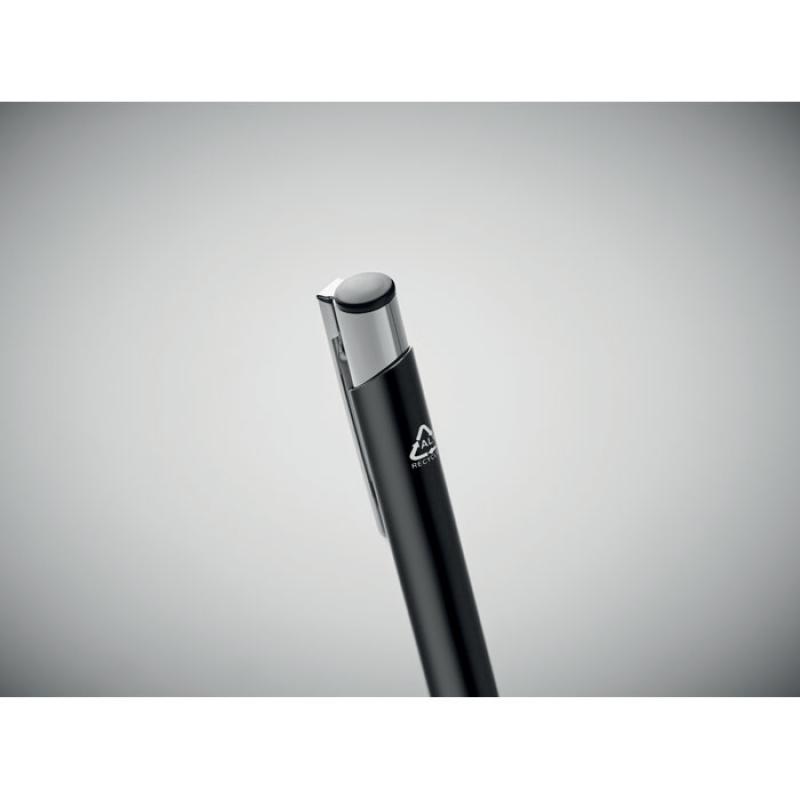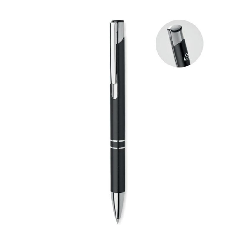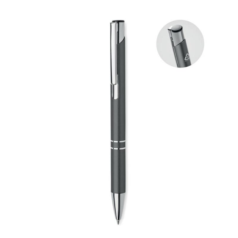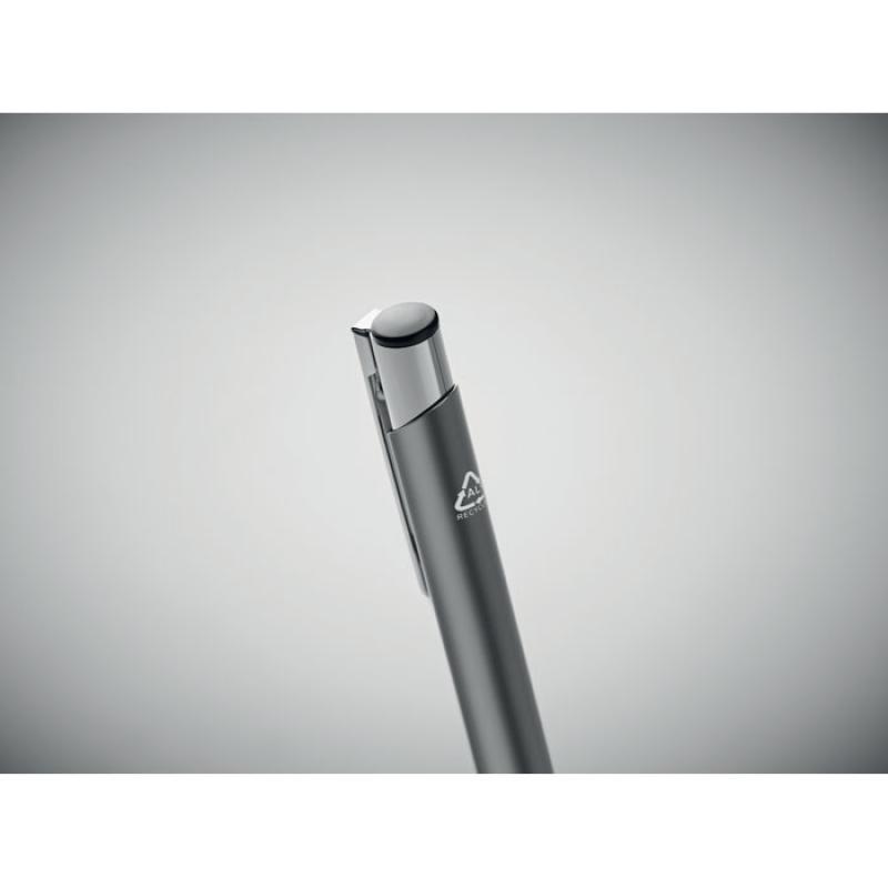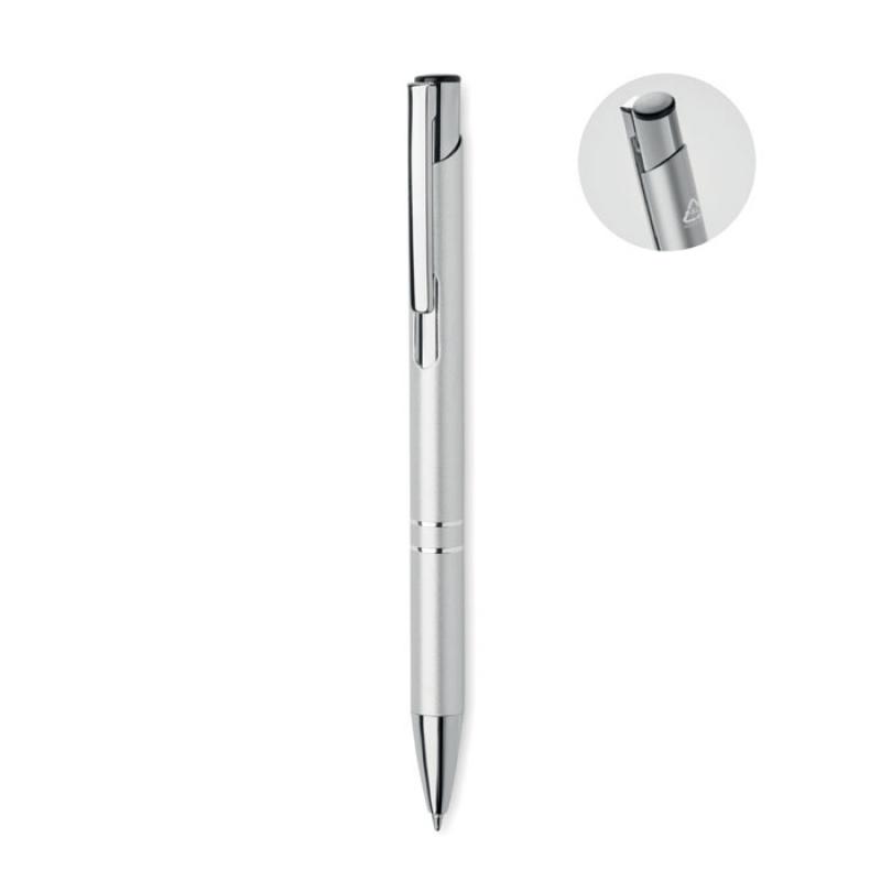 Bolígrafo con pulsador de aluminio reciclado. Tinta azul.