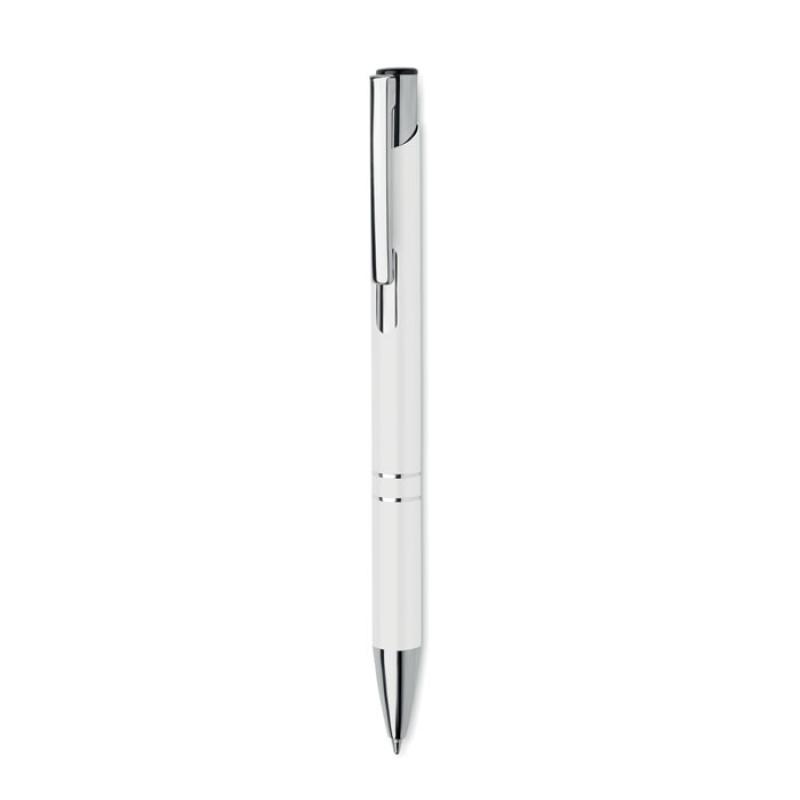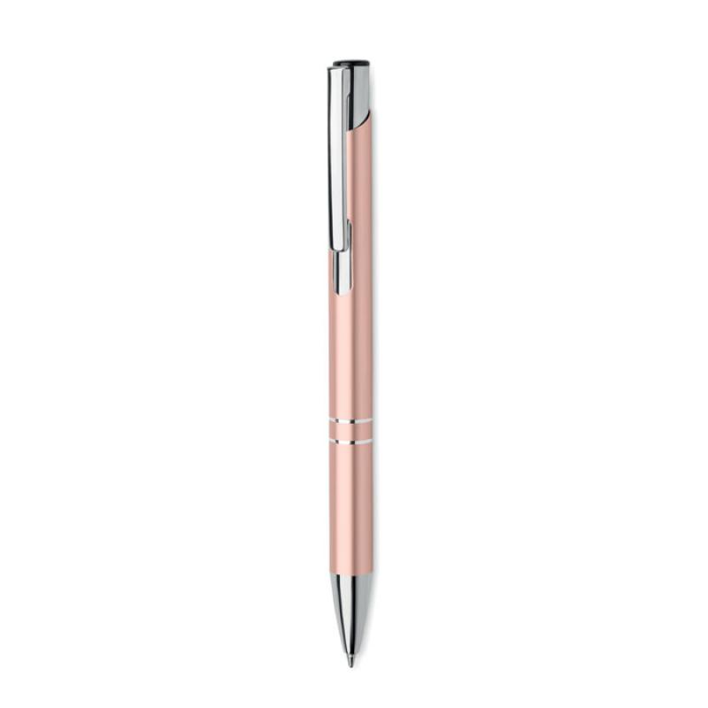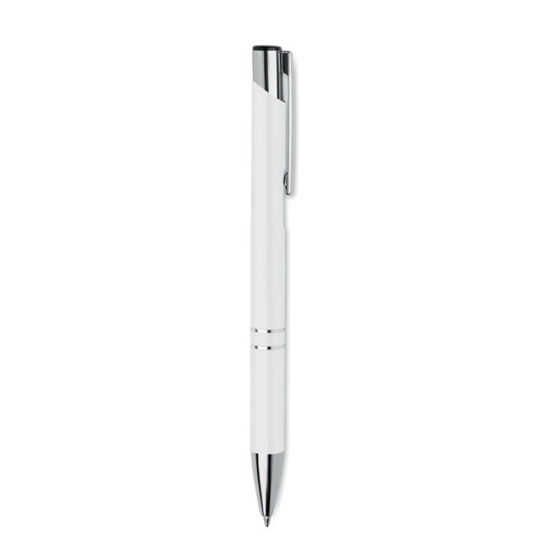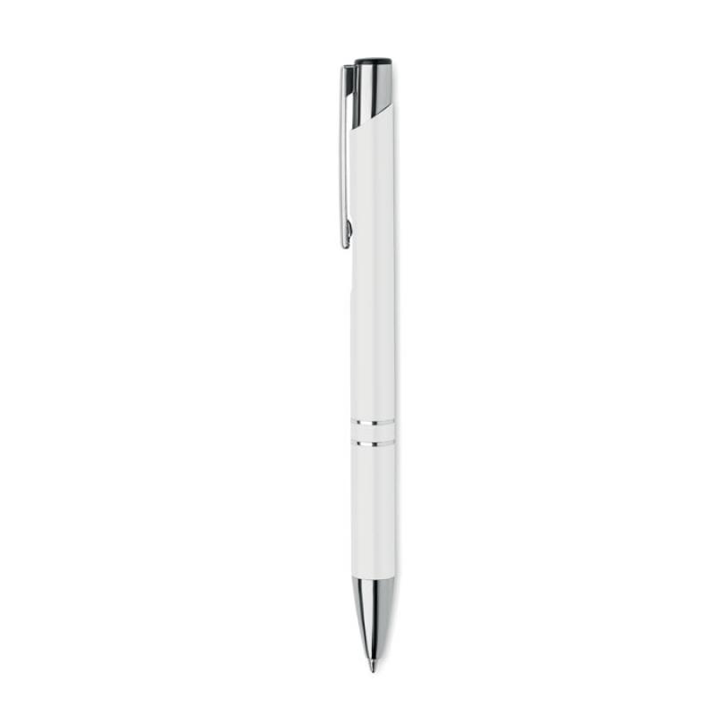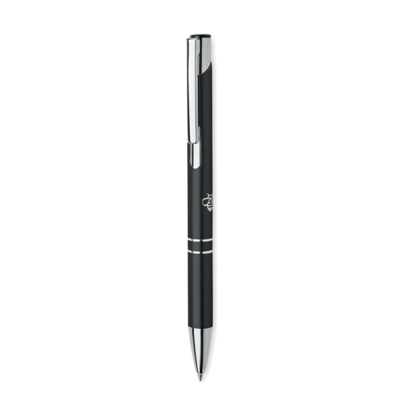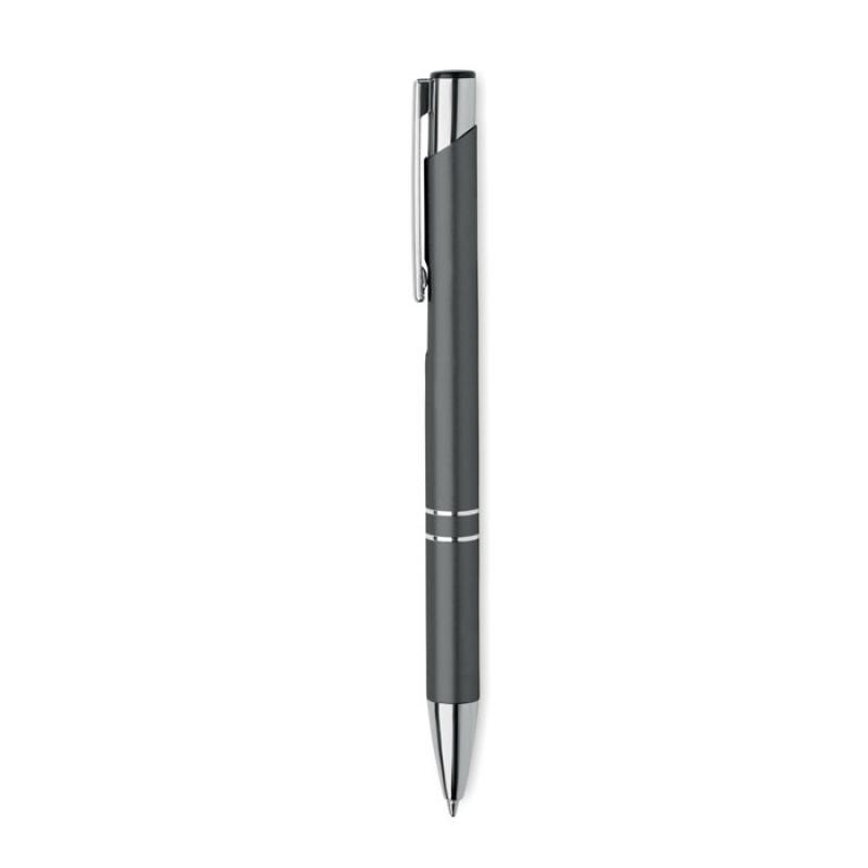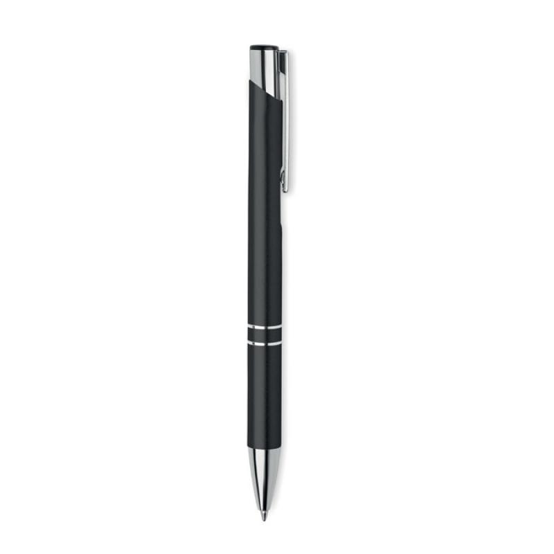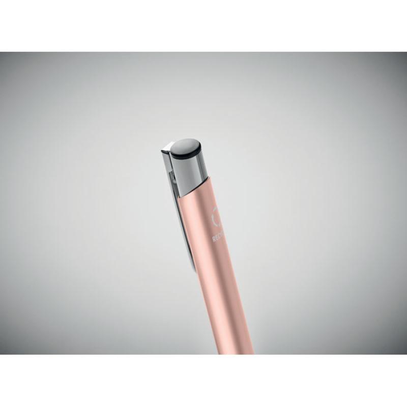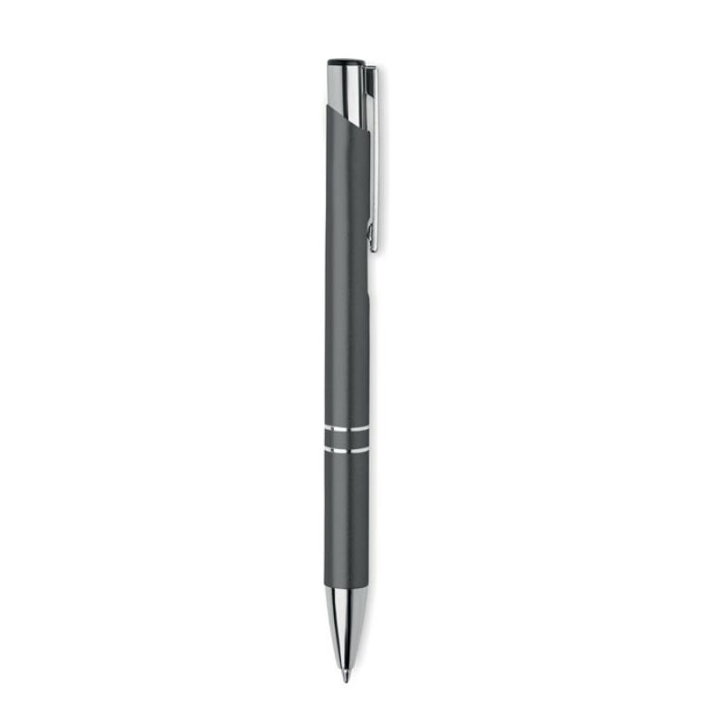 Bolígrafo con pulsador de aluminio reciclado. Tinta azul.