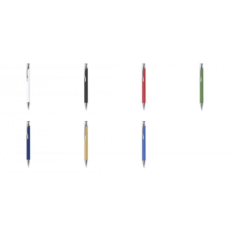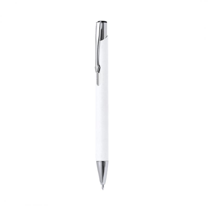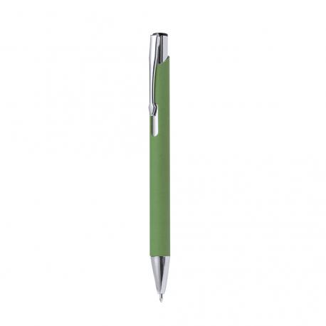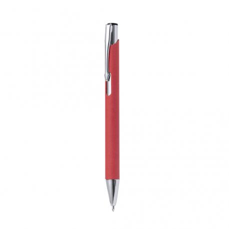 Bolígrafo de línea nature con mecanismo pulsador. Combinación de cuerpo en papel reciclado de color natural y accesorios en metal. Disponible en variada gama de colores, con tinta azul.