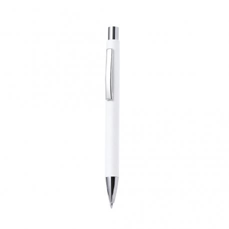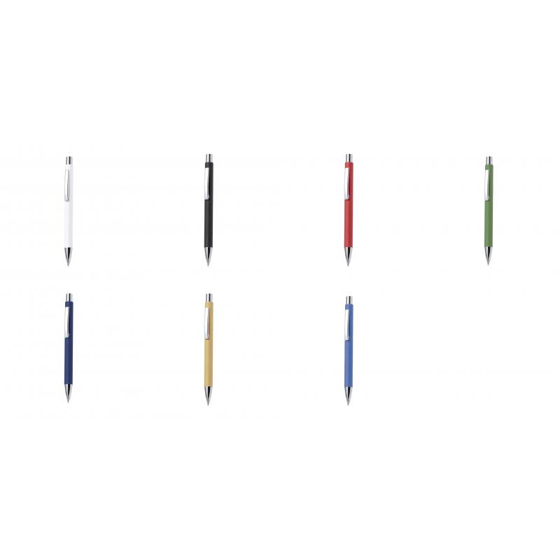 Elegante bolígrafo de mecanismo pulsador con cuerpo en papel reciclado y accesorios de acabado metálico en color plateado brillante. De tinta azul. Disponible en variada gama de colores.
