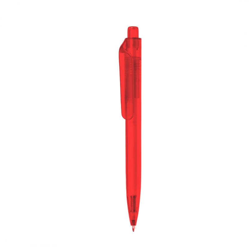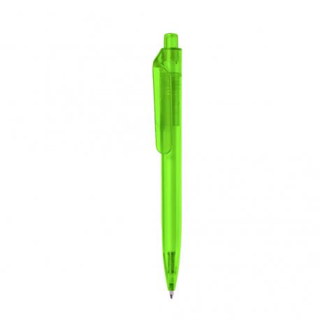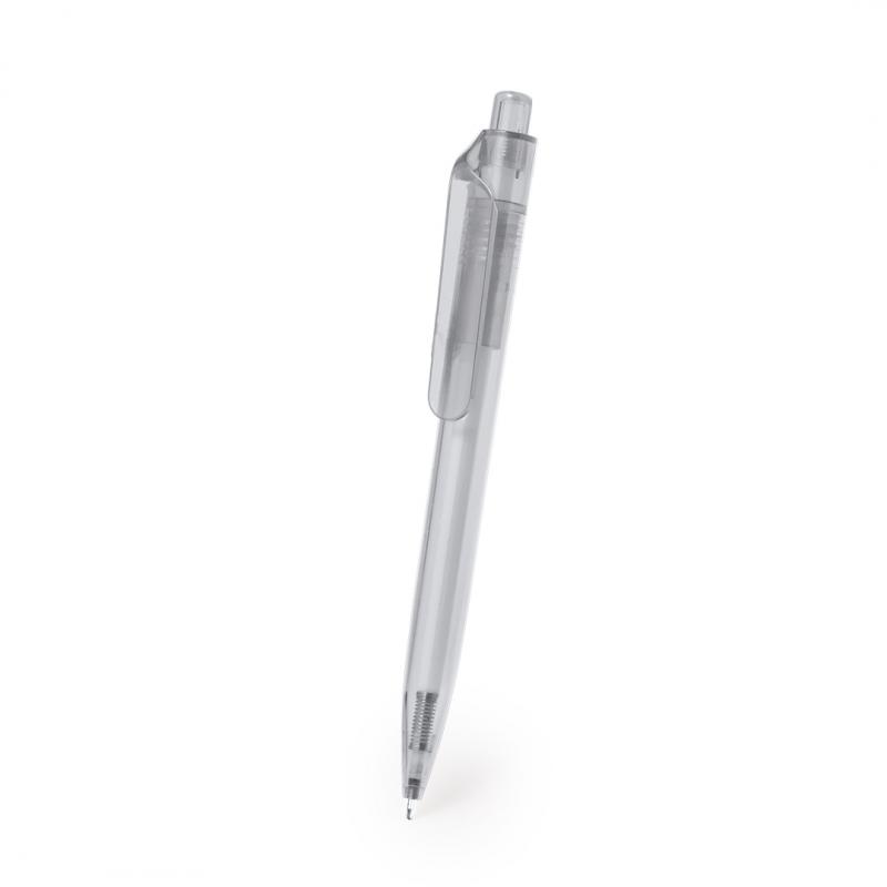 Bolígrafo de mecanismo pulsador fabricado en RPET. Cuerpo de suave acabado en variados colores transparentes y clip amplio. Logotipo RPET en la parte superior del bolígrafo, en tinta azul.El material RPET se elabora a partir de plástico reciclado, para así fomentar la reutilización de residuos plásticos y ayudar a la sostenibilidad del planeta.