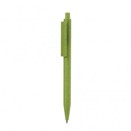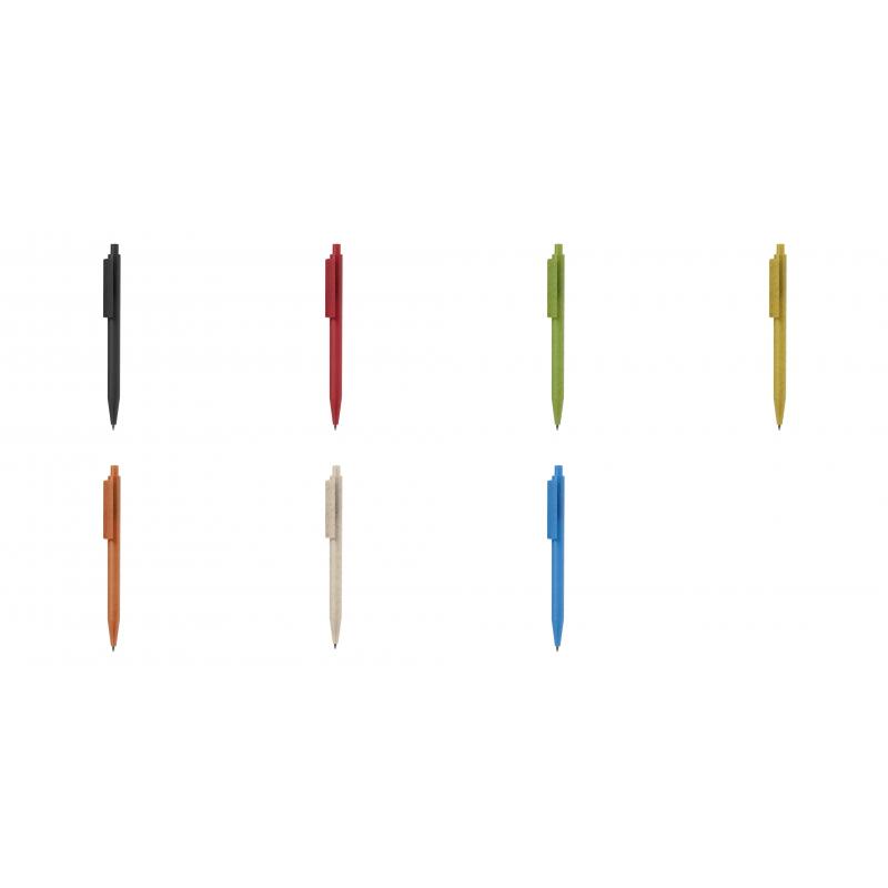 Práctico bolígrafo fabricado en caña de trigo y ABS. De mecanismo pulsador, en tinta azul y con logotipo Wheat Straw en la parte superior del bolígrafo. Disponible en variada gama de colores. La caña de trigo fomenta la utilización de materias primas naturales, reduciendo así las emisiones contaminantes.