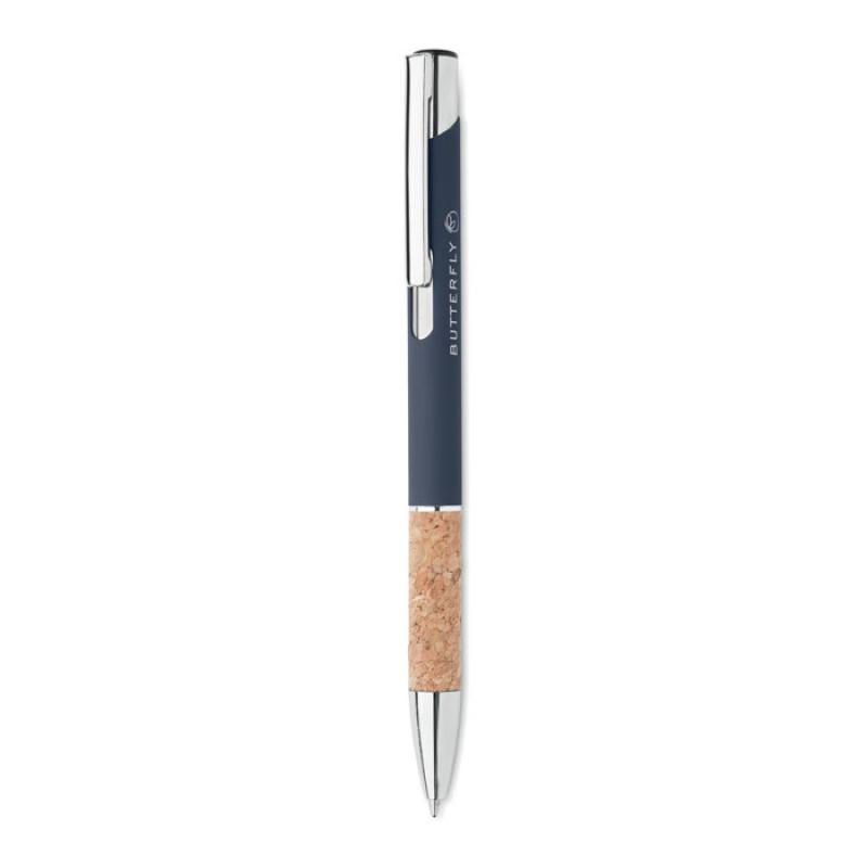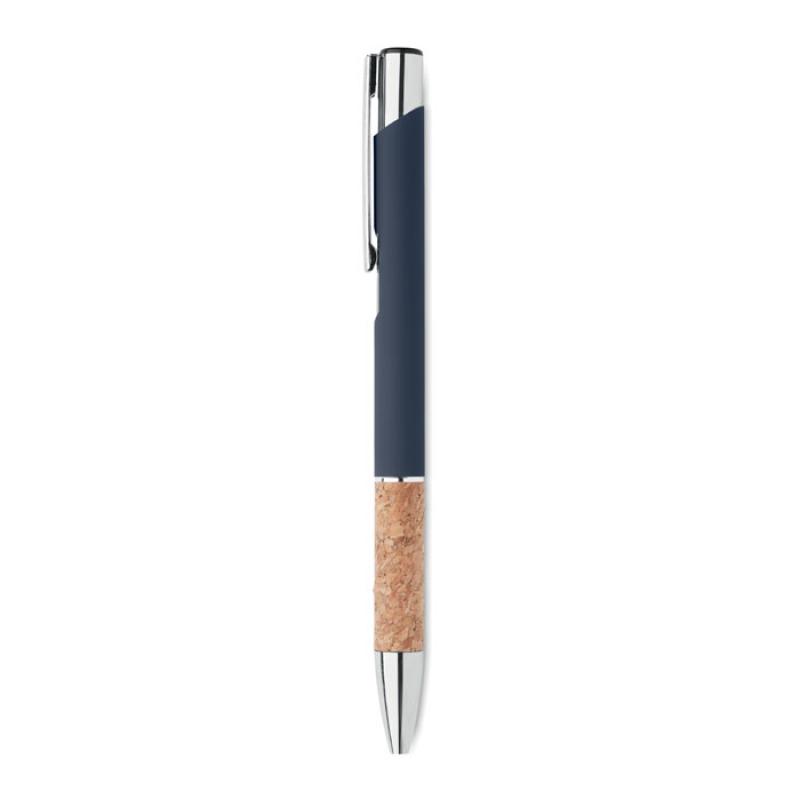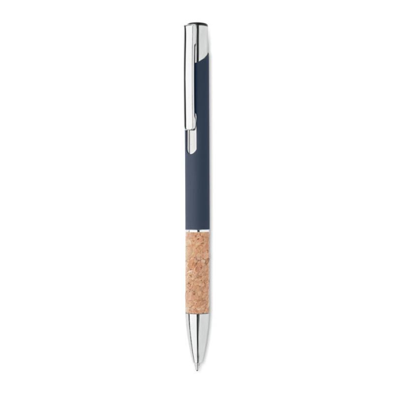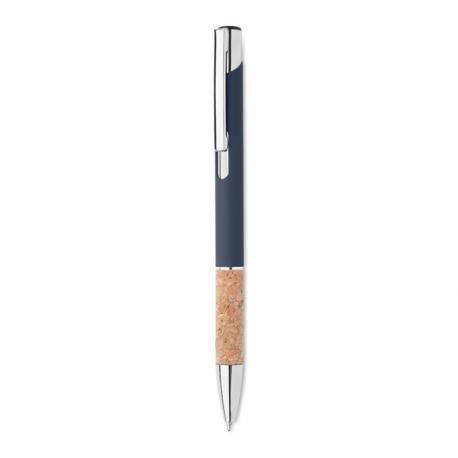 Bolígrafo con pulsador de aluminio con empuñadura de corcho. Tinta azul.Recipiente :
