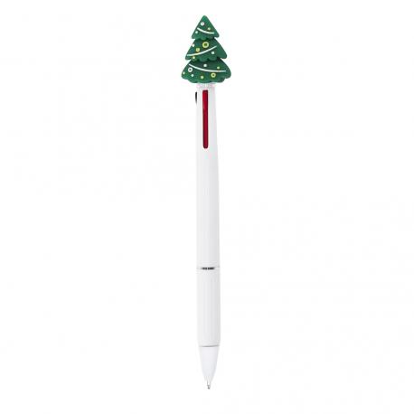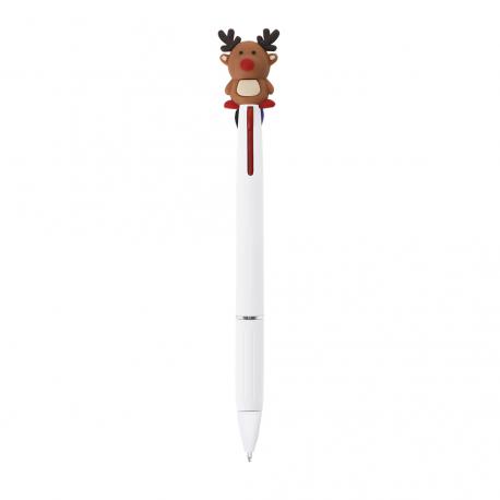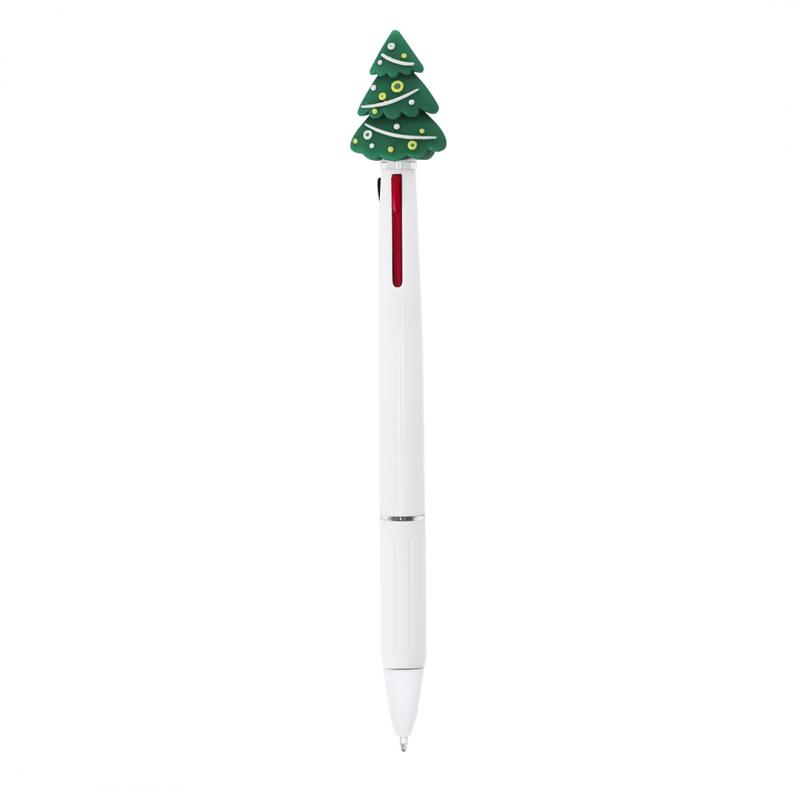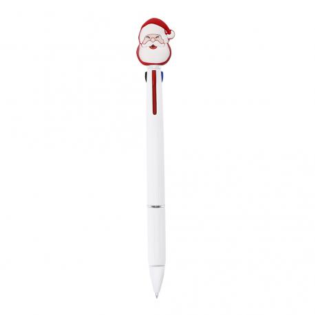 Bolígrafo multicolor 3 en 1 con mecanismo pulsador. Cuerpo en ABS blanco con acabado brillante y agarre en suave goma blanca con acabado mate. De 3 cartuchos en tinta azul, roja y negra.