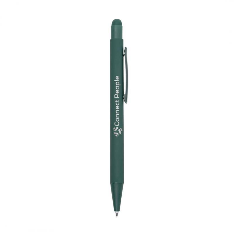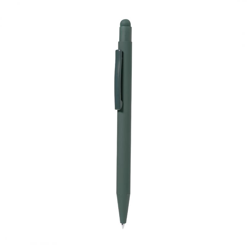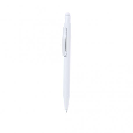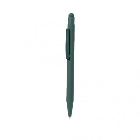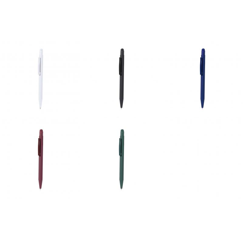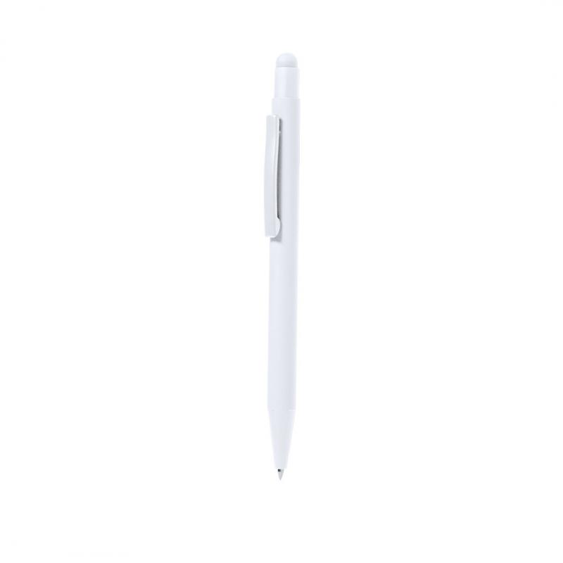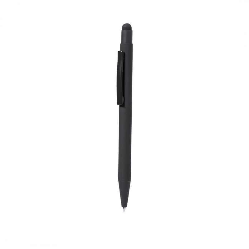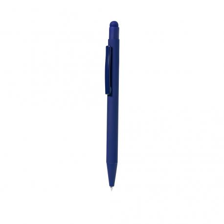 Bolígrafo puntero fabricado en aluminio. De mecanismo pulsador con puntero y clip metálico a juego con el cuerpo. Cuerpo terminación en goma, especialmente diseñado para marcaje en láser. De cartucho jumbo y en tinta azul.