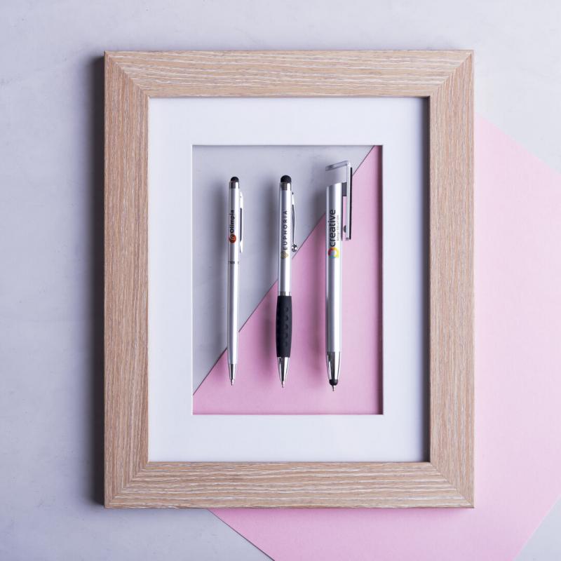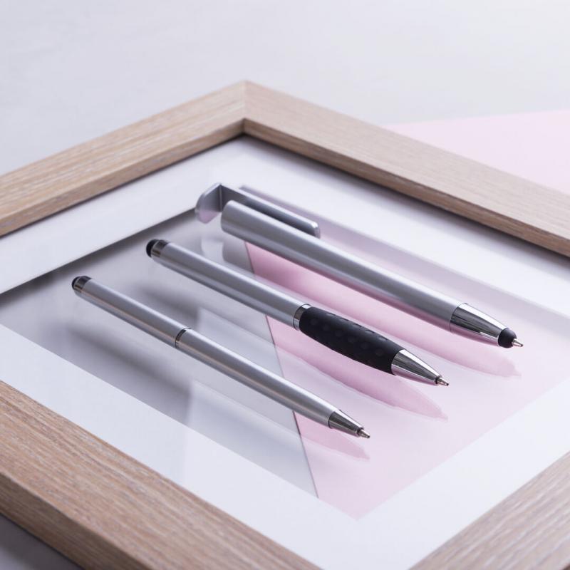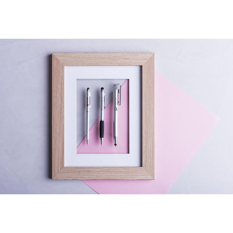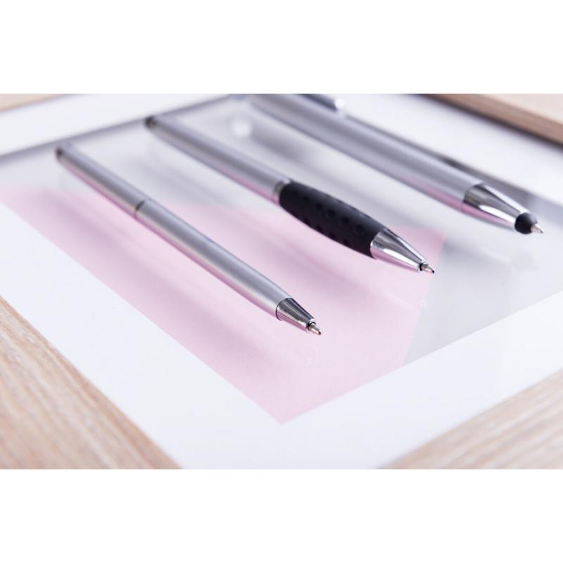 Bolígrafo puntero de mecanismo giratorio con cuerpo en de suave acabado metalizado. Con clip cromado. En variada gama de llamativos colores. Tinta azul.