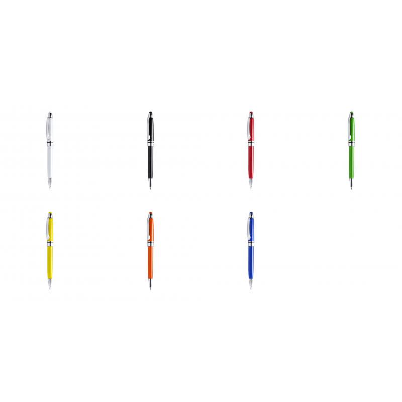 Bolígrafo puntero de colorido diseño, con cuerpo en vivos colores brillantes a juego con el puntero. De mecanismo pulsador, con detalles cromados y clip metálico. Cartucho jumbo y tinta azul.