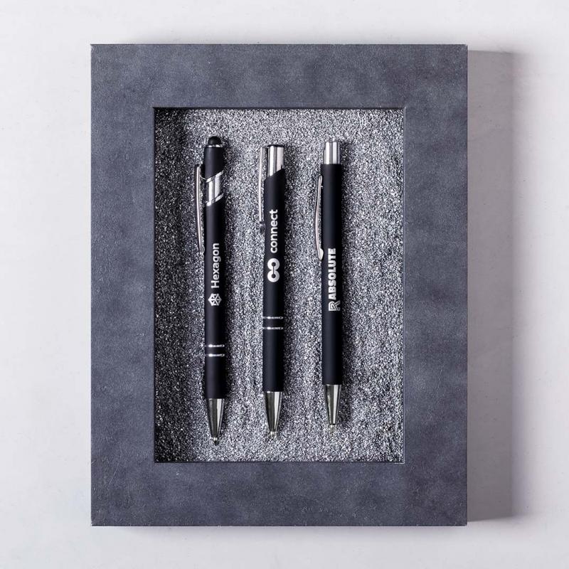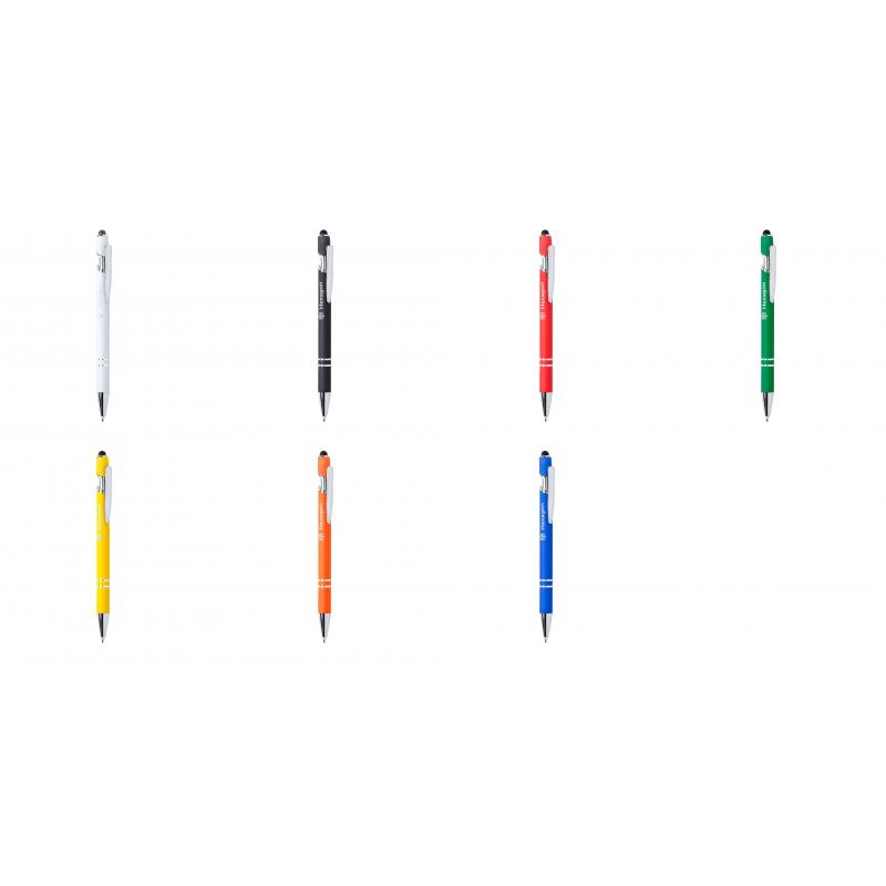Bolígrafo puntero de mecanismo pulsador y original diseño. Cuerpo de aluminio acabado goma, especialmente diseñado para marcaje en láser y mostrar el logotipo en tono plateado. Con accesorios cromados y clip metálico. Disponible en variada gama de colores, con cartucho jumbo y tinta azul.