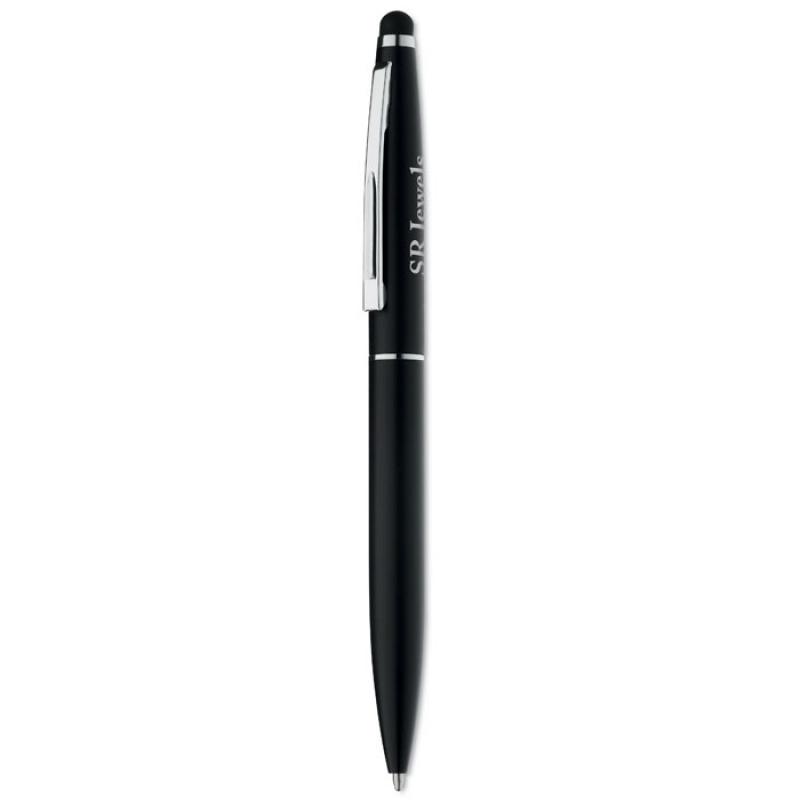 Bolígrafo giratorio de aluminio con acabado mate y puntero para pantallas táctiles. Tinta azul.