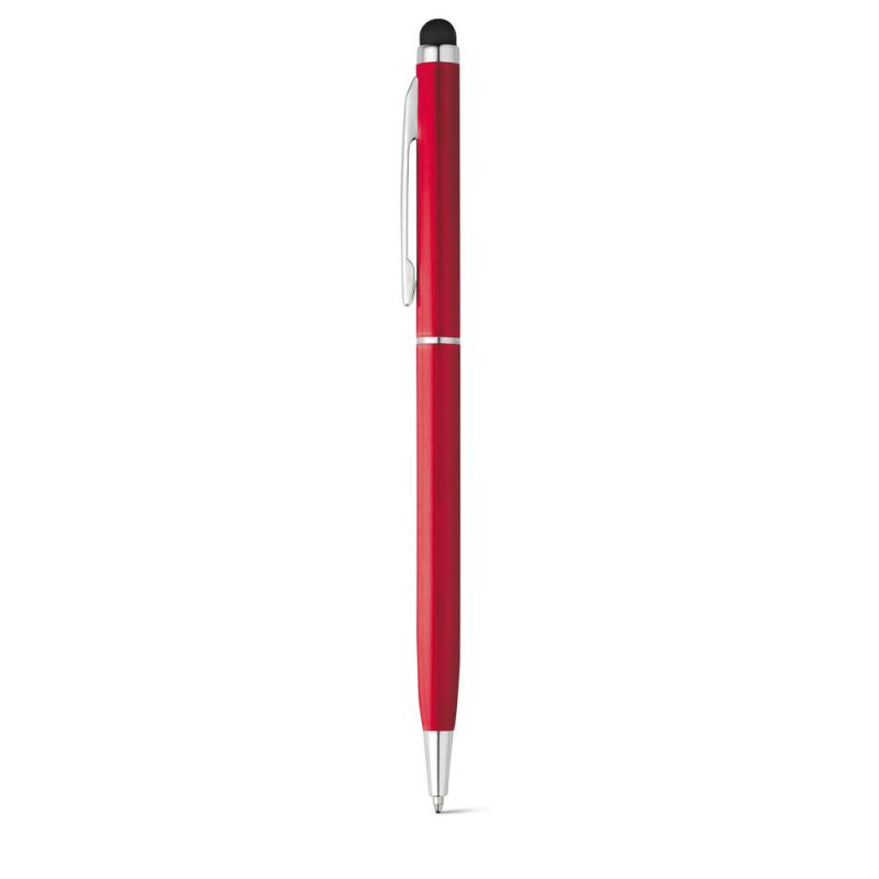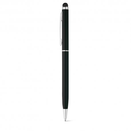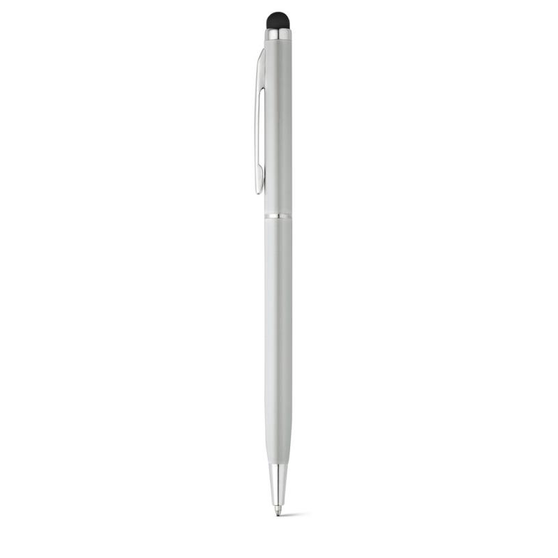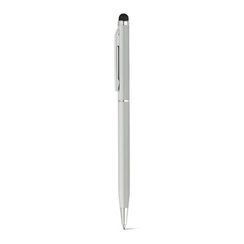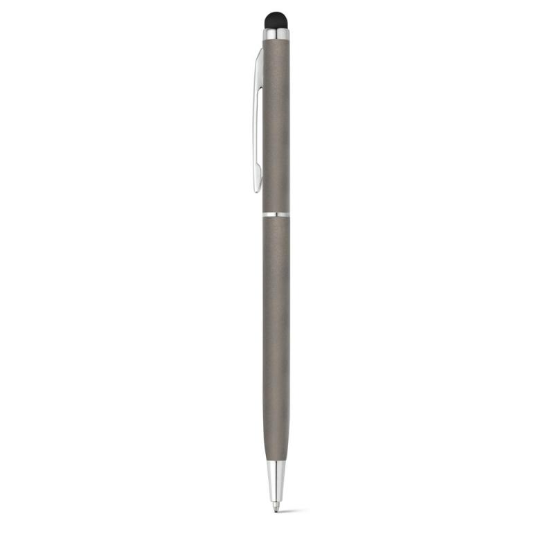 Bolígrafo fino de aluminio con mecanismo de giro, clip y puntero táctilRecipiente :