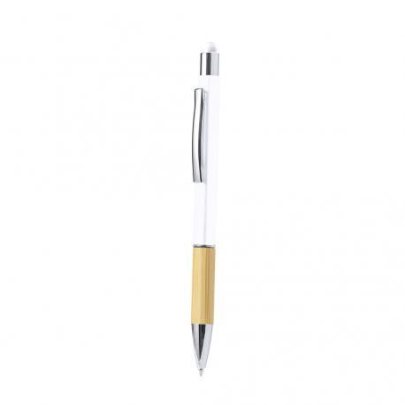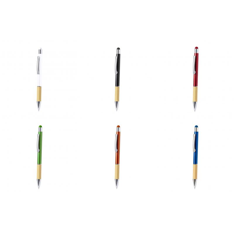 Elegante bolígrafo puntero de bambú y aluminio con mecanismo giratorio. Cuerpo en resistente aluminio de acabado brillante y empuñadura en bambú, con la caña en una amplia gama de distintivos colores y puntero en la parte superor a juego. Clip metálico y en tinta azul. Presentado en bolsa individual reciclada.Materiales como el bambú fomentan la utilización de materias primas naturales, reduciendo las emisiones contaminantes. Proviene de una planta de gran resistencia y versatilidad, con crecimiento y regeneración rápidos, siendo una excelente alternativa al uso de madera tradicional.