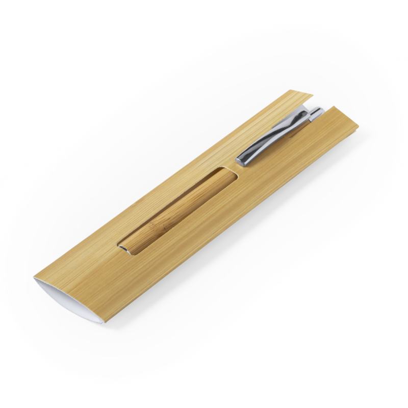 Funda de bolígrafo de línea nature. Fabricada en cartón, con patrón inspirado en las vetas de bambú. Especialmente diseñada para mostrar la publicidad del clip y/o del cuerpo del bolígrafo (bolígrafo no incluido).