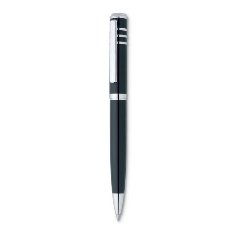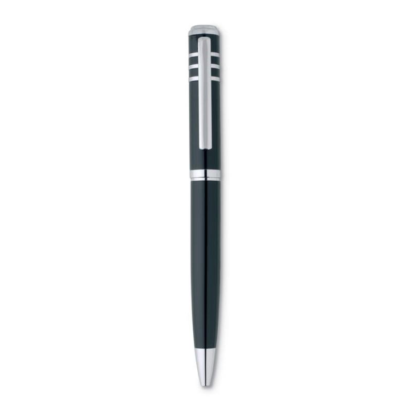 Bolígrafo metálico en acabado brillante. Se presenta en una caja de regalo de cartón. Tinta negra.