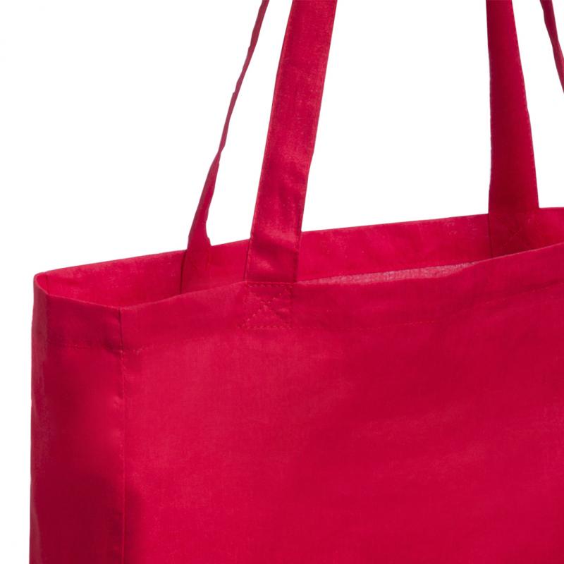 Bolsa en material 100% algodón en variada gama de vivos colores. Con asas largas de 70cm, fuelle y acabado cosido. Resistencia hasta 7kg de peso.