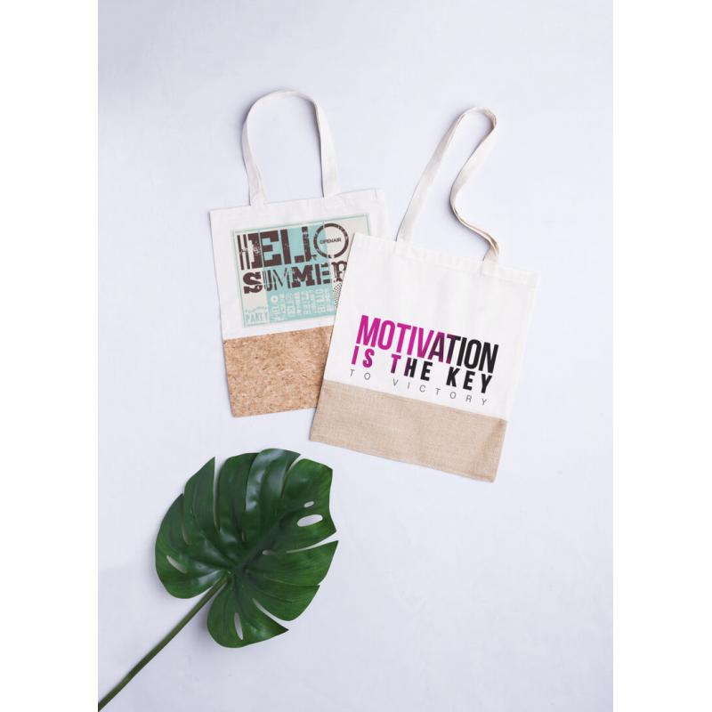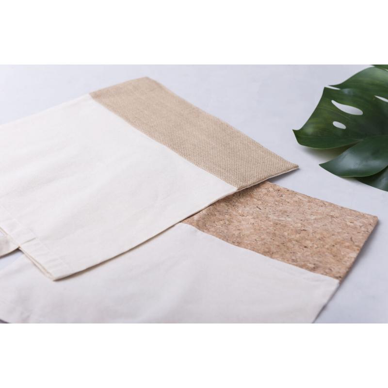 Bolsa de materiales naturales en combinación de algodón y corcho. Con asas largas, acabado cosido y resistencia hasta 8kg de peso.