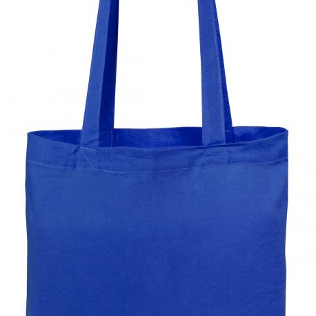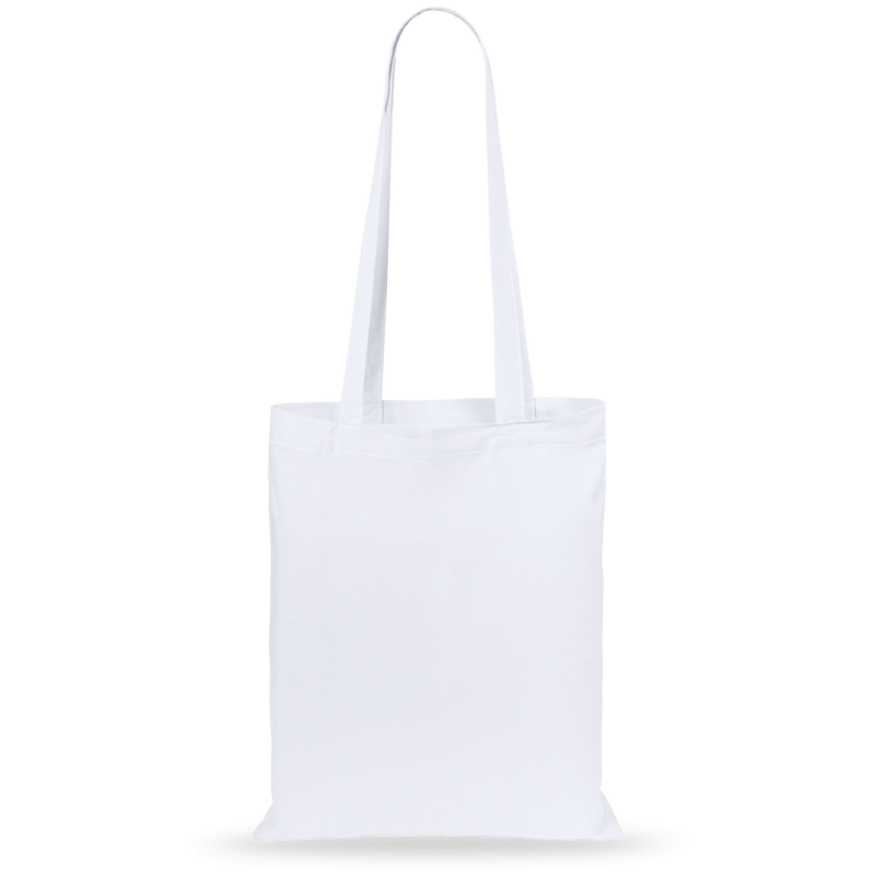 Bolsa fabricada en suave 100% algodón de 140g/m2. Con asas largas reforzadas de 70cm disponible en una amplia gama de colores. Resistencia de hasta 7kg de peso.