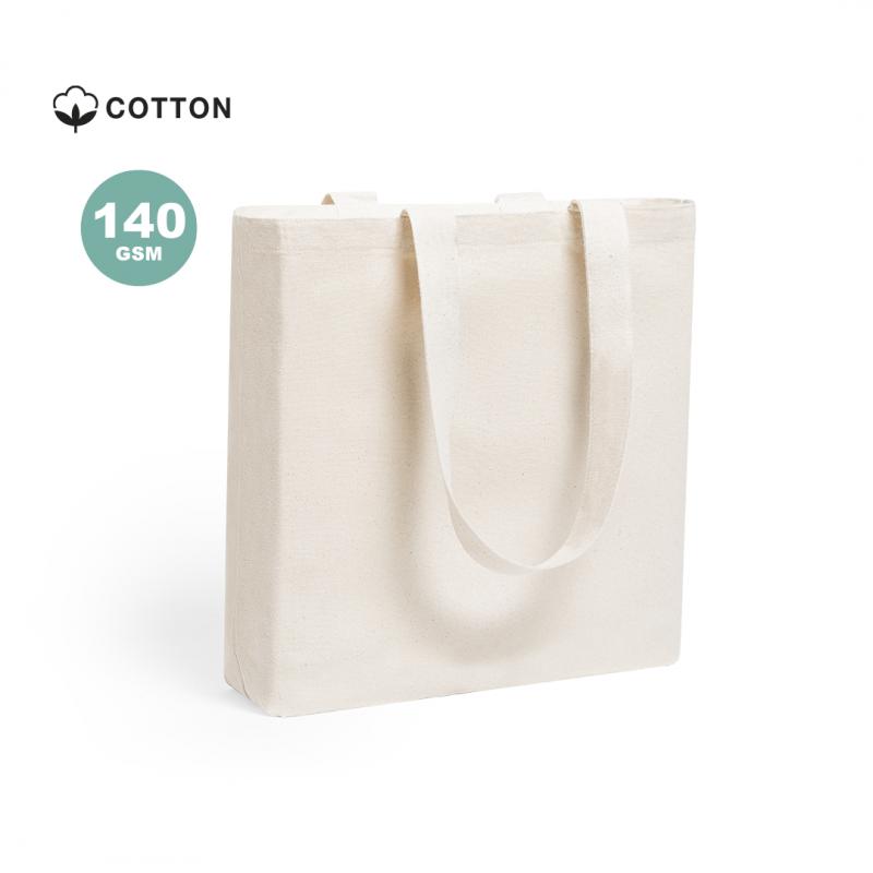 Bolsa tote de línea nature en algodón de 140g/m2. Asas medianas en algodón, de 70 cm y reforzadas. Acabado cosido y resistencia hasta 8kg de peso.