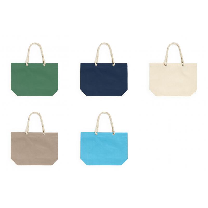 Bolsa fabricada en resistente algodón de 220g/m2, con asas de algodón en color blanco. De acabado cosido, con fuelle y asas largas de 90cm reforzadas. Disponible en variada gama de colores, con resistencia hasta 10kg de peso.