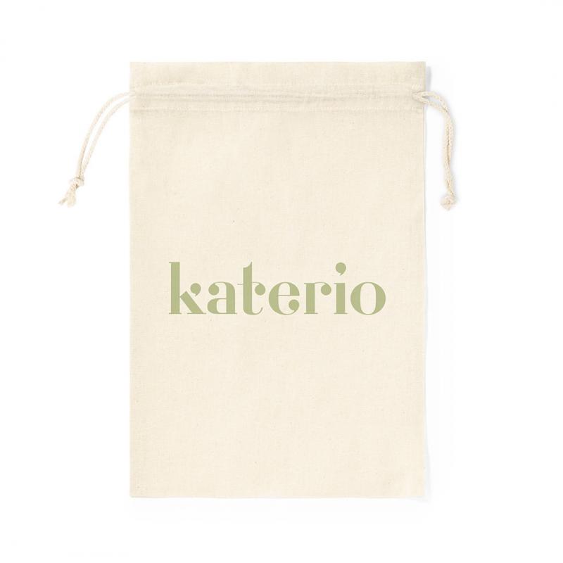 Bolsa de línea nature en resistente material 100% algodón de 105g/m2, con acabado en color natural. Cierre de cordón de algodón y acabado cosido.