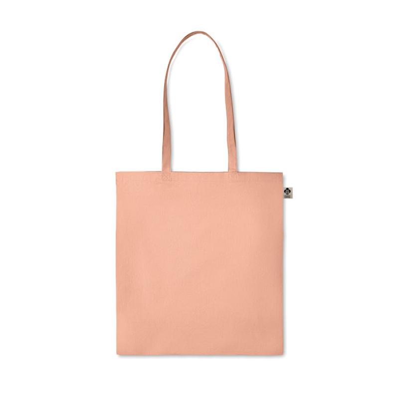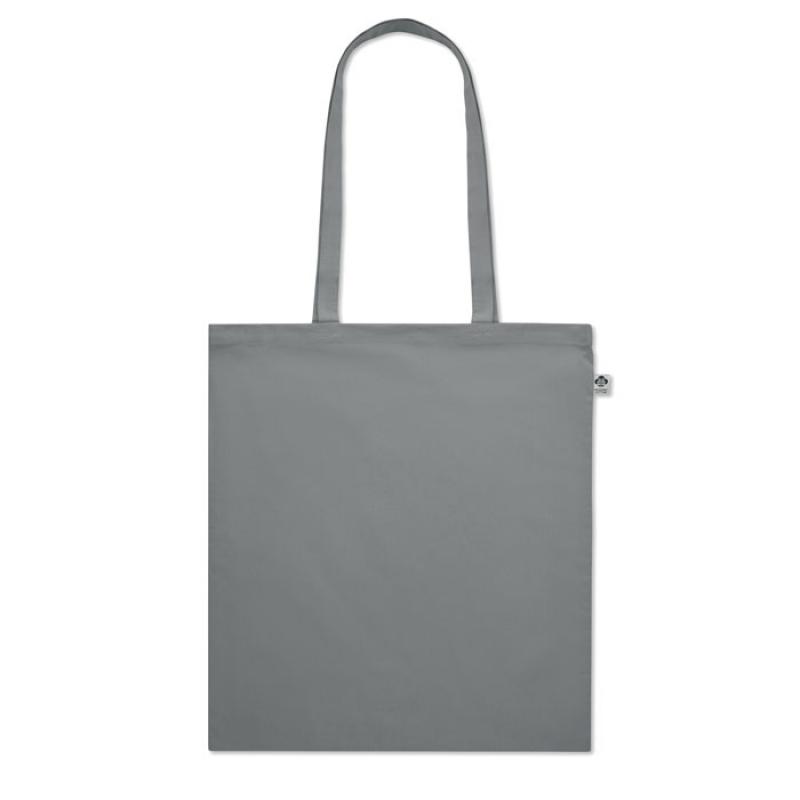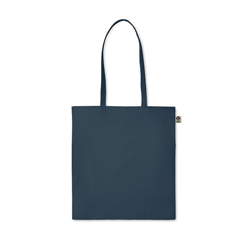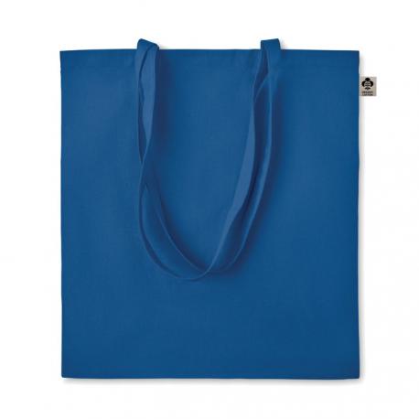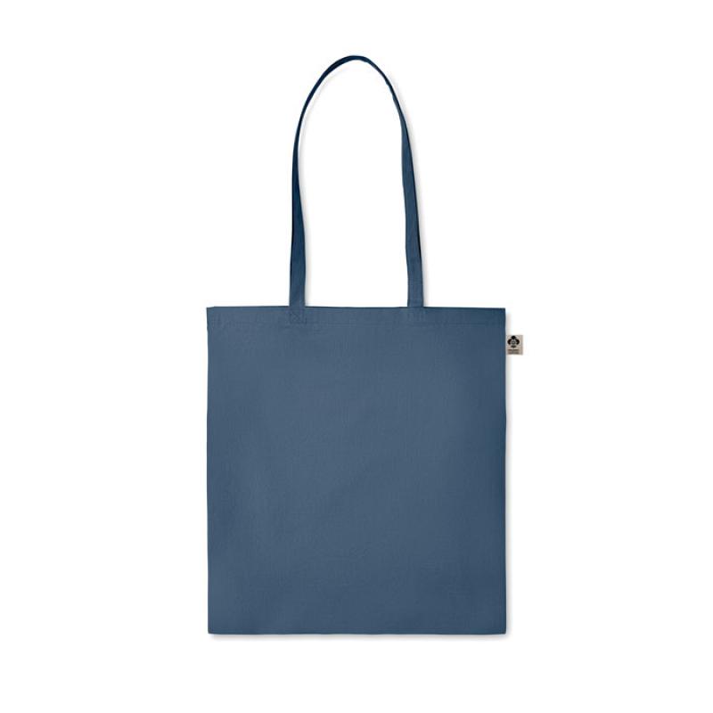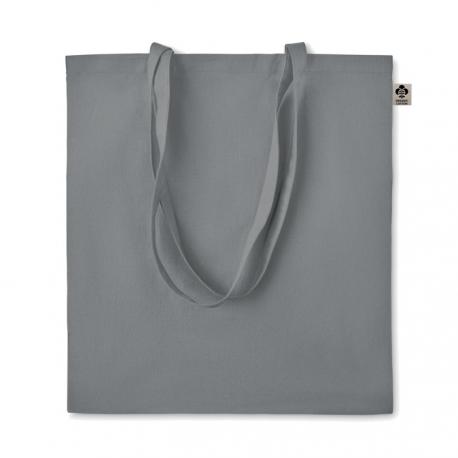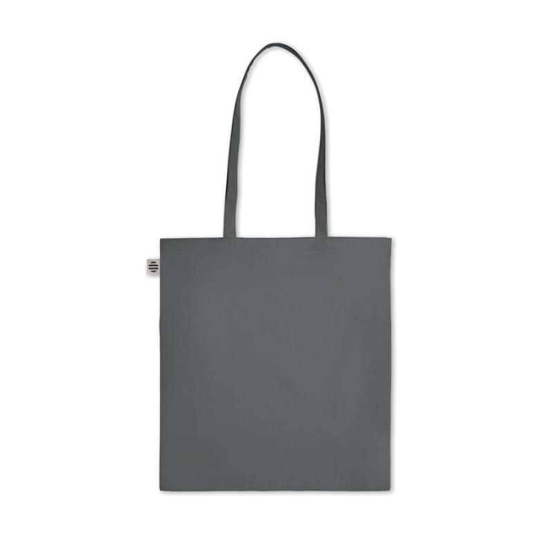 Bolsa de la compra de algodón orgánico con asas largas. 140 gr/m². Producido bajo certificado estándar para controlar el uso de sustancias nocivas en textil.