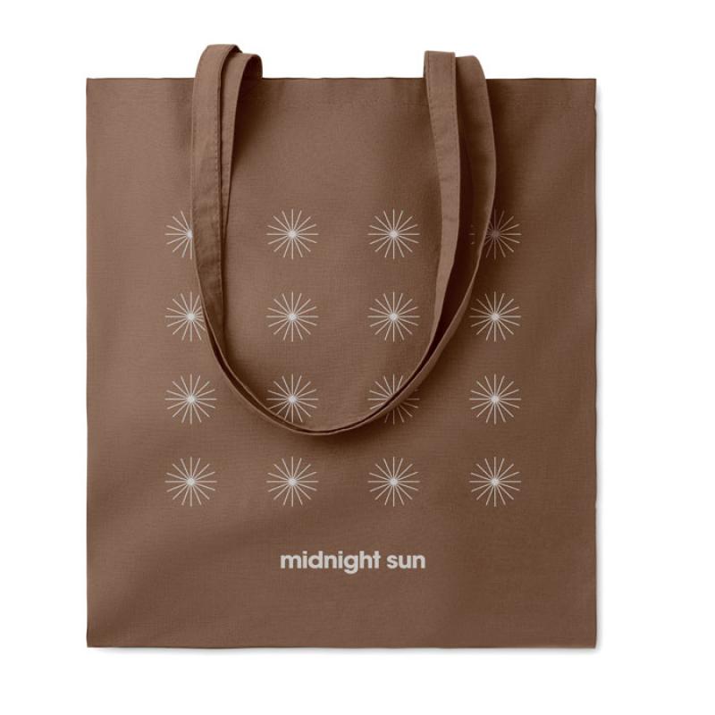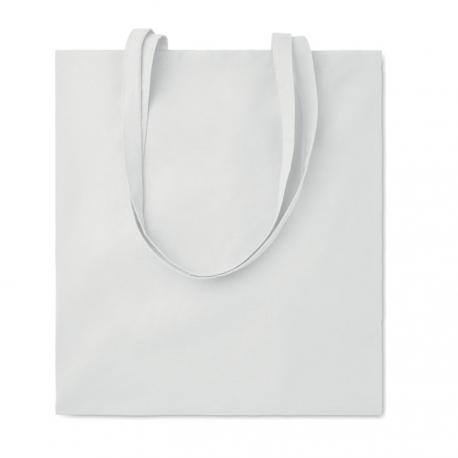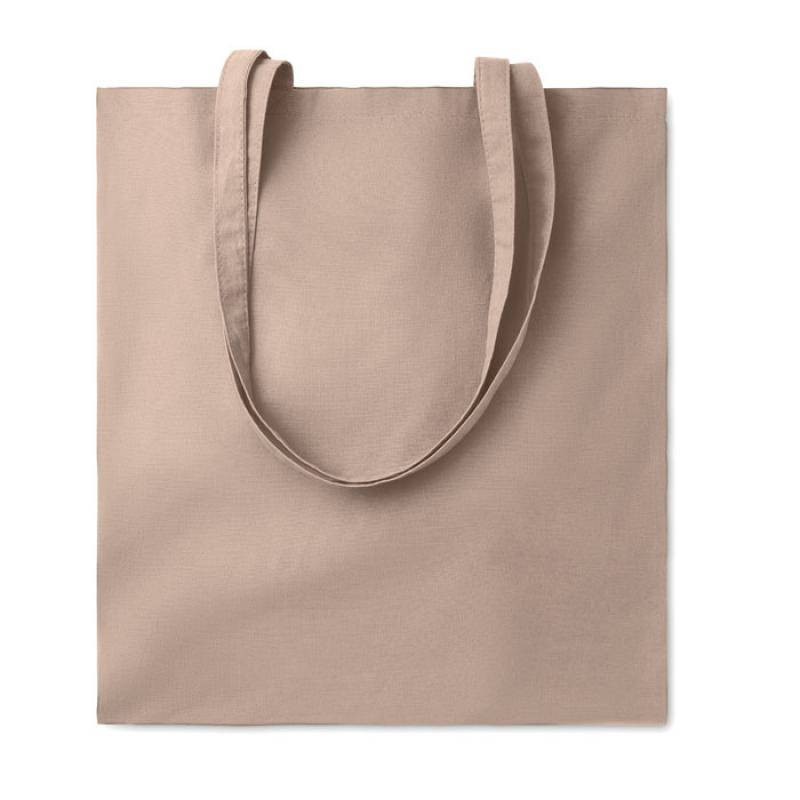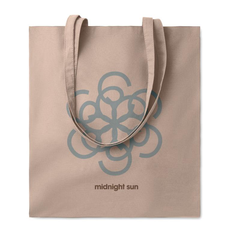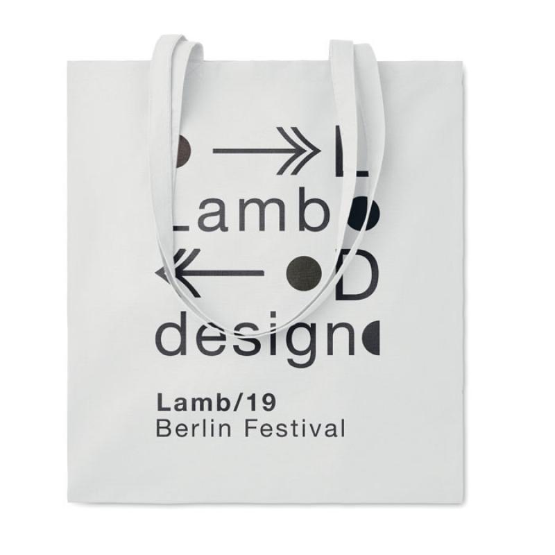 Bolsa de la compra de algodón con asas largas. 180 gr/m². Producido bajo certificado estándar para controlar el uso de sustancias nocivas en textil.