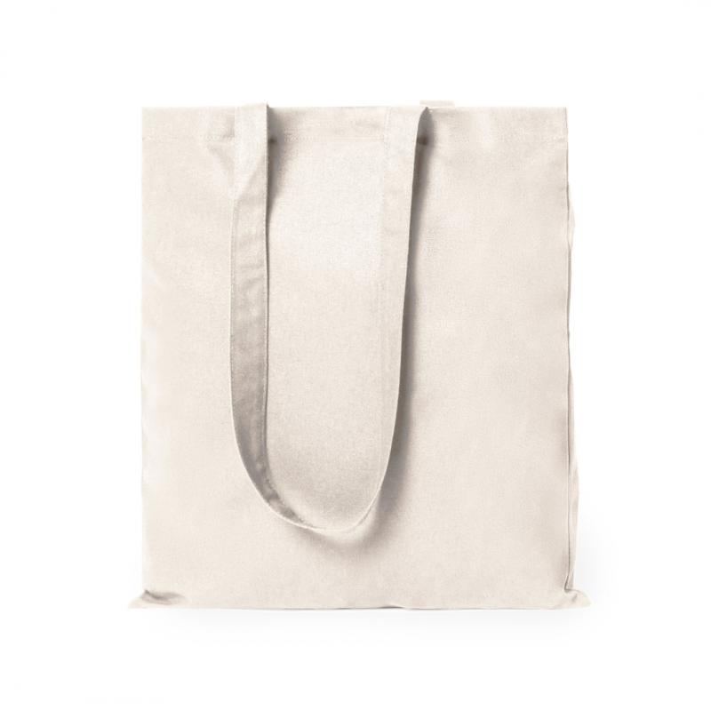 Bolsa fabricada en algodón 100%, de acabado natural y en 140g/m2. De acabado cosido, con fuelle en base y asas largas reforzadas (70 x 2,5 cm). Resistencia hasta 6 kg de peso.