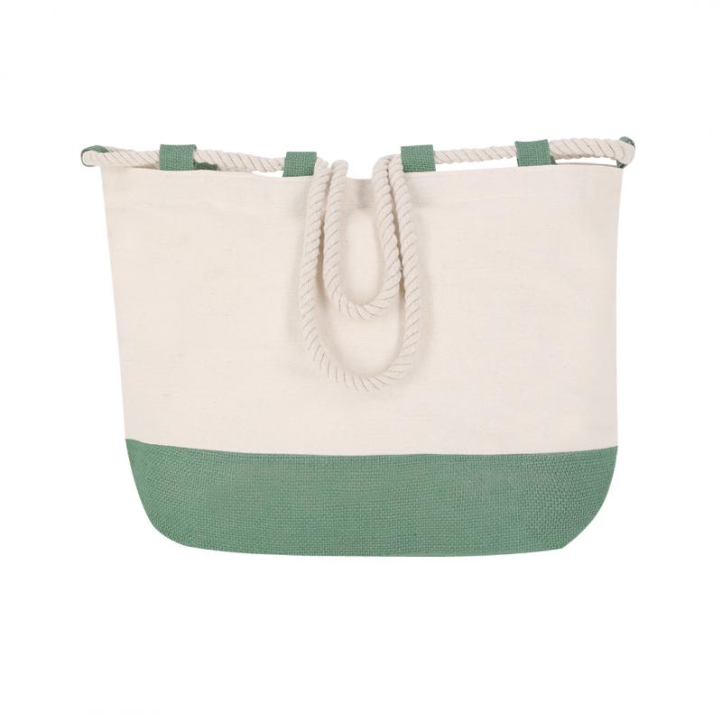 Bolsa fabricada en resistente algodón de 280g/m2. De acabado cosido, con fuelle y asas largas de 50cm reforzadas, de color blanco en forma de cuerda. Disponible en variada gama de colores bicolor, con resistencia hasta 10kg de peso.