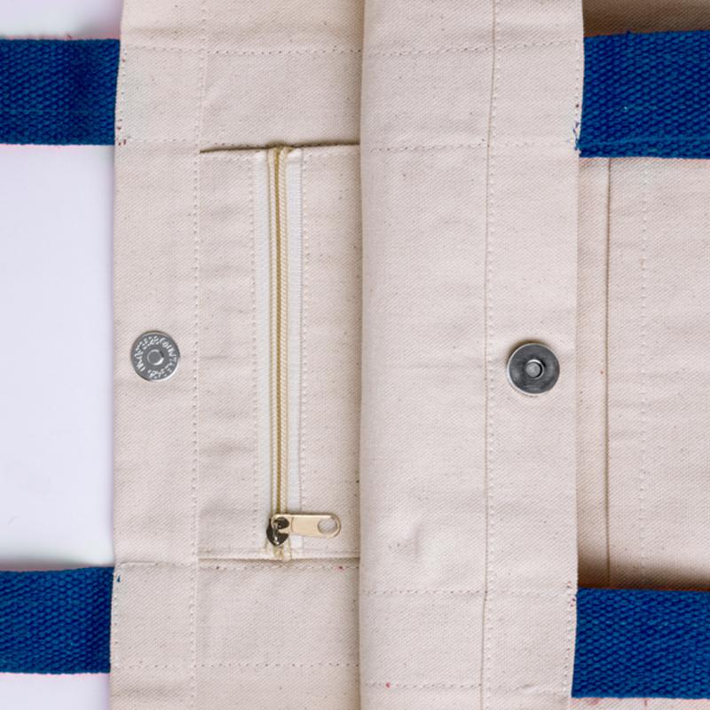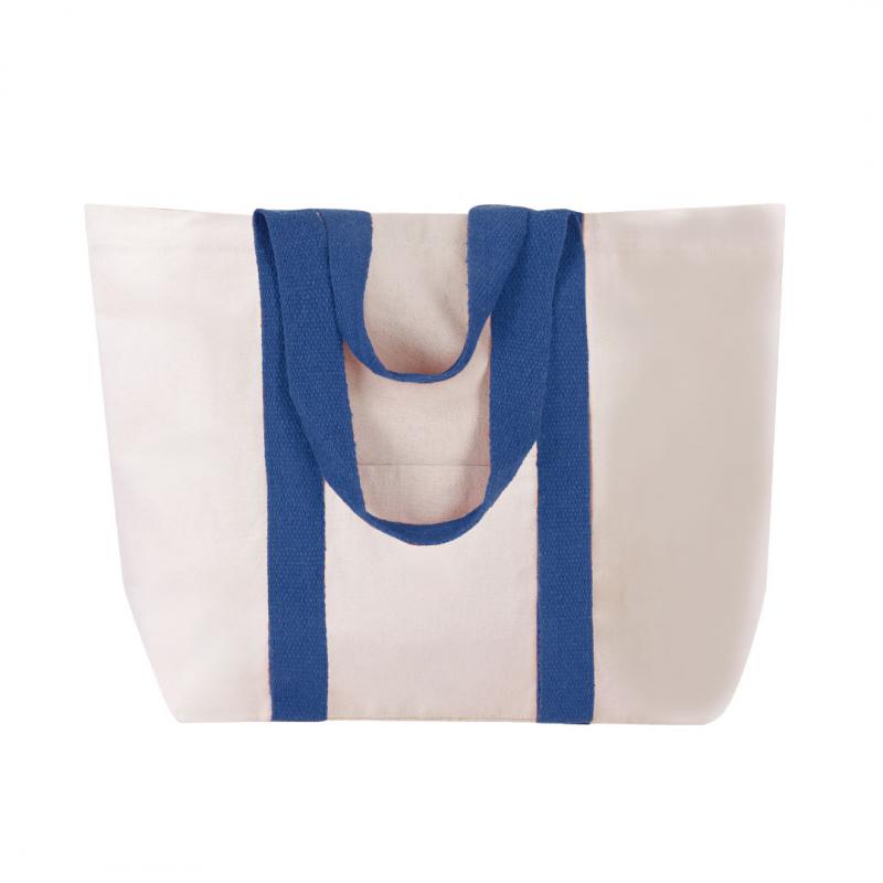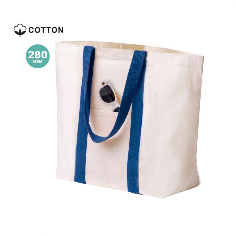 Bolsa fabricada en resistente algodón de 280g/m2. De acabado cosido, cierre de botón, fuelle y asas largas de 60cm reforzadas, en diversos colores. Además, tiene bolsillo exterior de fácil acceso y otro interior con cierre de cremallera. Resistencia hasta 10kg de peso.
