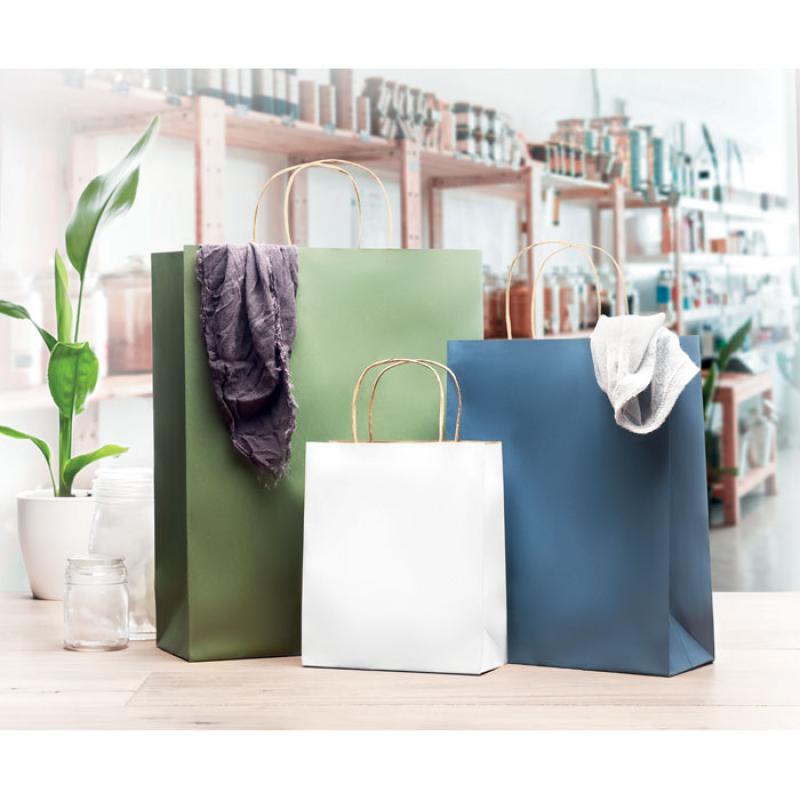 Bolsa de regalo de papel pequeña (50% reciclada). 90 gr/m². Fabricado en la UE.