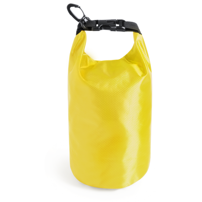 Bolsa impermeable de 2,3l de capacidad, fabricada en resistente ripstop. Cierre de seguridad, asa con hebilla de ajuste y mosquetón incluido. Disponible en variada gama de colores brillantes.