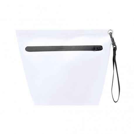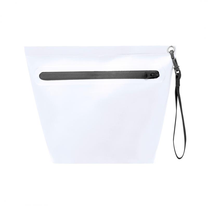 Portatodo impermeable fabricado en resistente pvc. Cierre de seguridad por cremallera con asa de transporte con mosquetón de plástico giratorio. Disponible en variada gama de colores con cremallera y asa de color negro.