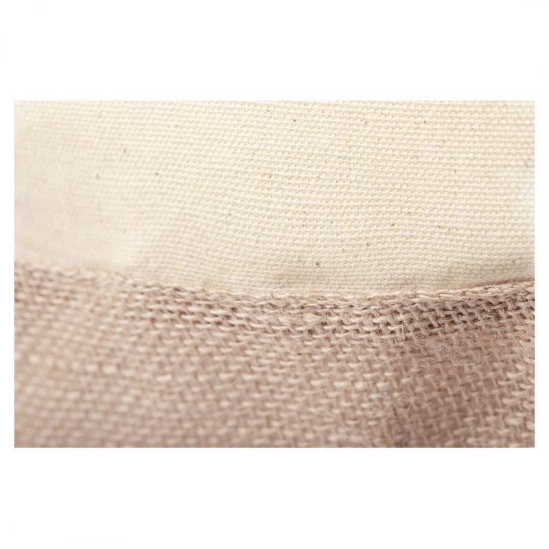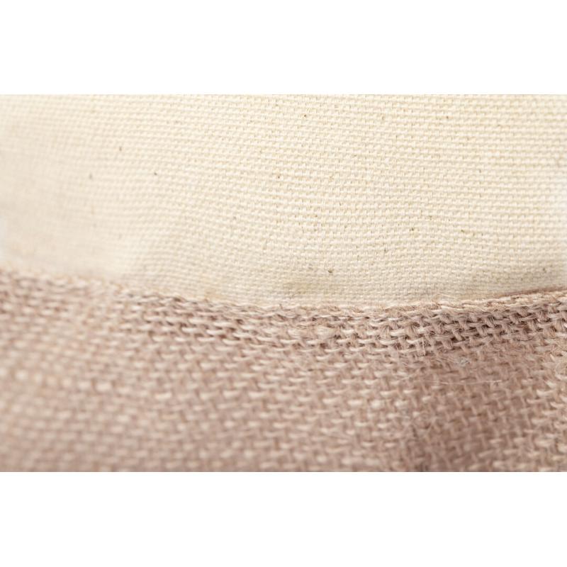 Bolsa de línea nature, en combinación de materiales yute y algodón. Tamaño 48 x 35 + 15 cm, de acabado cosido y con asas largas reforzadas de 90 cm en algodón. Resistencia de hasta 9 kg de peso.