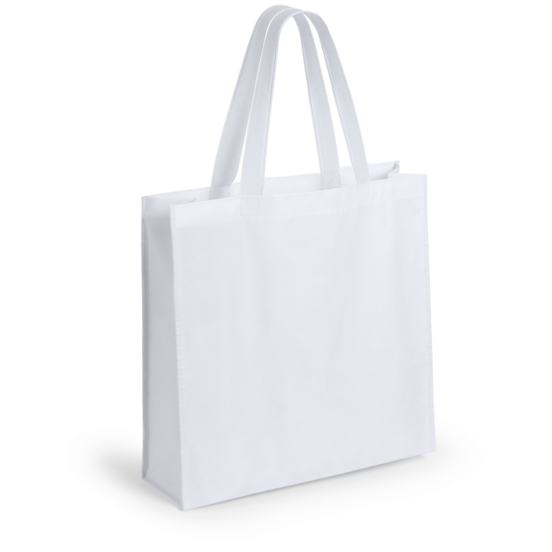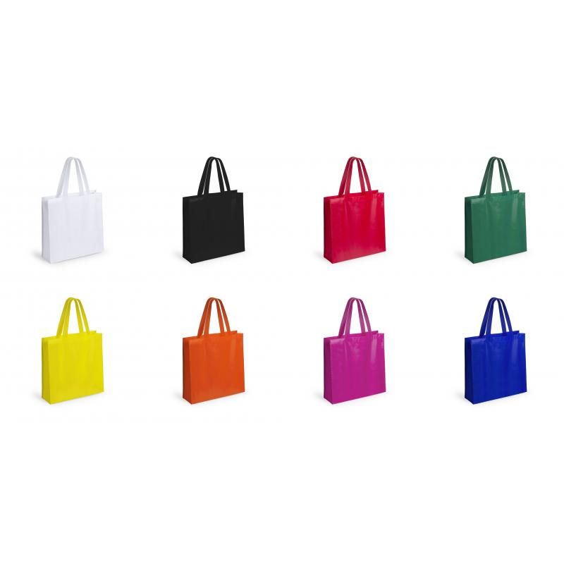 Bolsa en non-woven laminado de acabado mate de 110g/m2, en variada gama de vivos colores. Con asas reforzadas medianas de 55cm, fuelle y acabado cosido. Resistencia hasta 5kg de peso.
