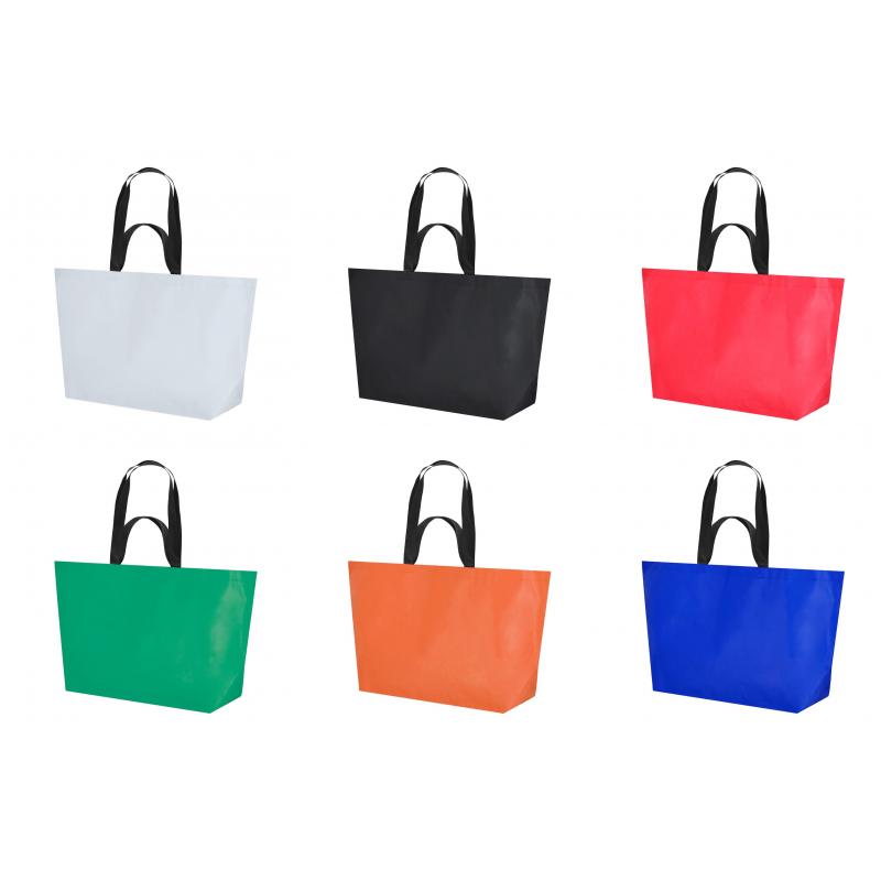Bolsa fabricada en pp-woven laminado de gran capacidad. Con doble asas, cortas de 44x3cm y largas de 77x3cm reforzadas con costura en X y resistencia de hasta 10kg