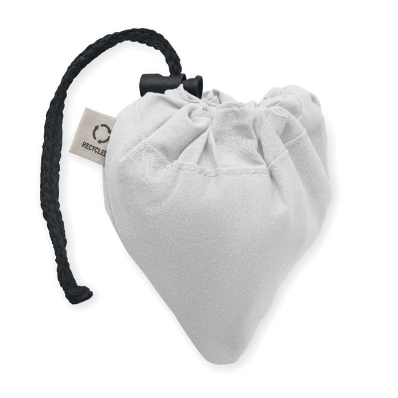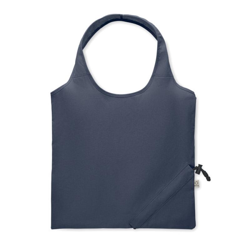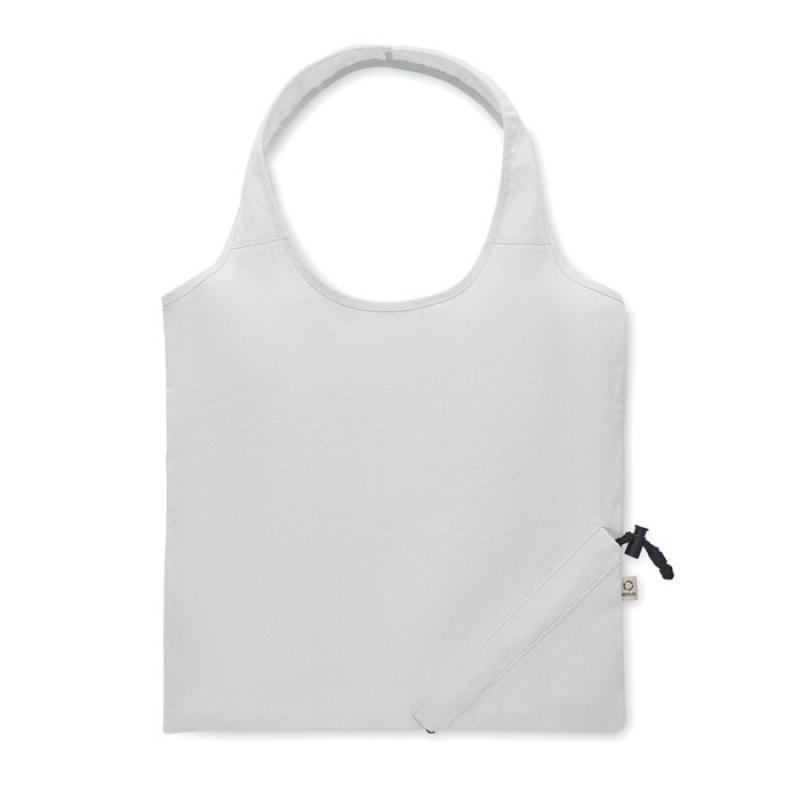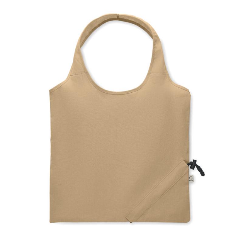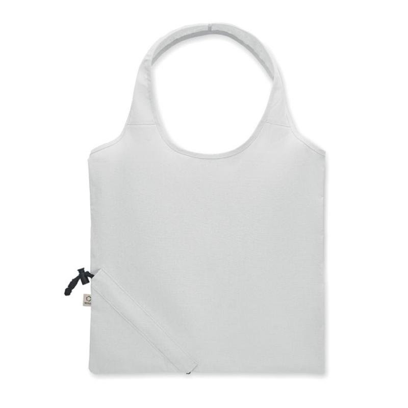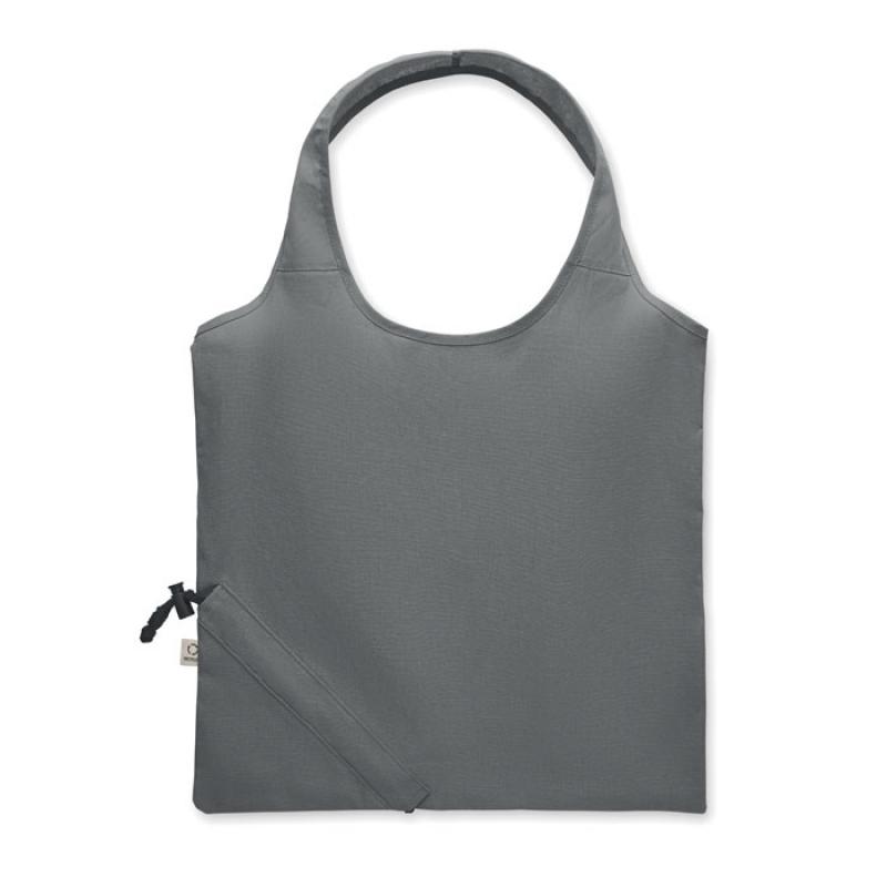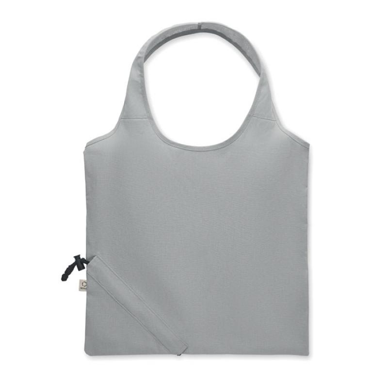 Bolsa de la compra plegable de algodón reciclado preconsumo (70% algodón reciclado y 30% RPET). 140 gr/m².Este artículo podría encoger después de la impresión.Recipiente :