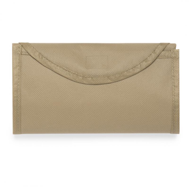 Bolsa plegable y reutilizable de inspiración nature en non-woven de 80g/m2. Tamaño 38x42 cm, de acabado termosellado y con asas medianas reforzadas de 40 cm. Plegado de pequeño tamaño con cierre de botón para cómodo transporte. Resistencia de hasta 7 kg de peso.