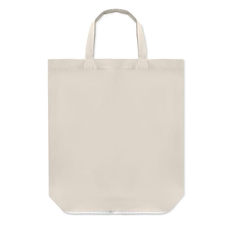 Bolsa plegable de algodón con asas cortas. 135 gr / m². Se suministra desplegado.