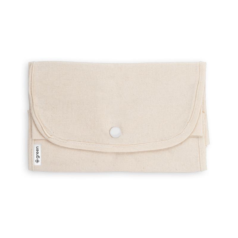 Bolsa plegable de algodón (50%) y algodón reciclado (50%) (140 g/m²) con asas de 38 cm. Abierto: 380 x 470 mm | Doblado: 135 x 205 mm