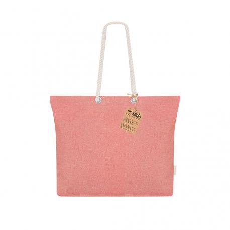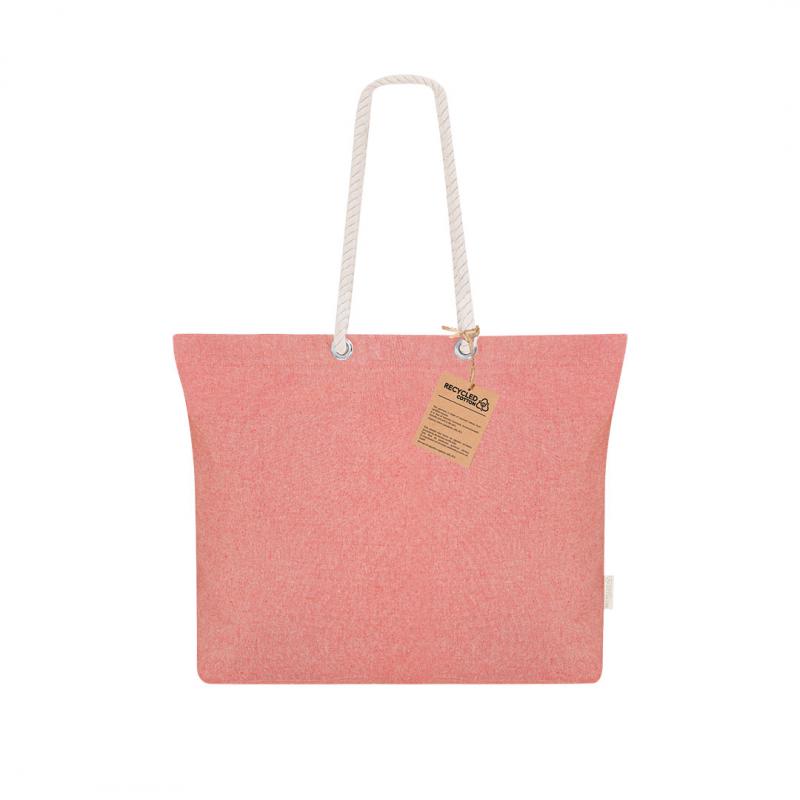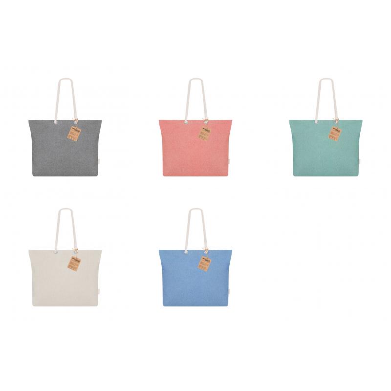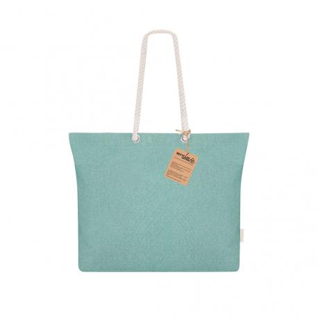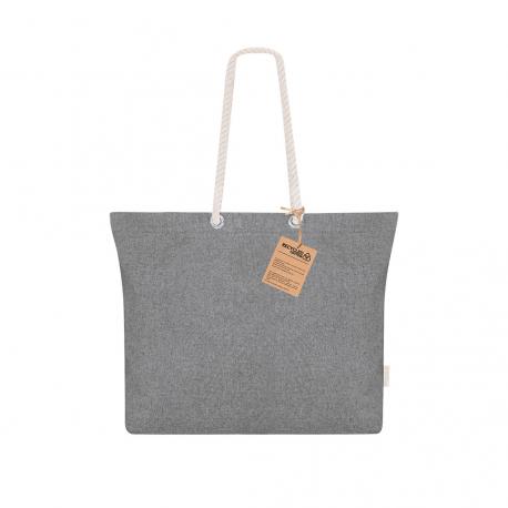 Bolsa confeccionada principalmente en Algodón Reciclado de 220g/m2. Con fuelle y asas largas de algodón en color natural y diseño trenzado. Incluye distintivo algodón reciclado.