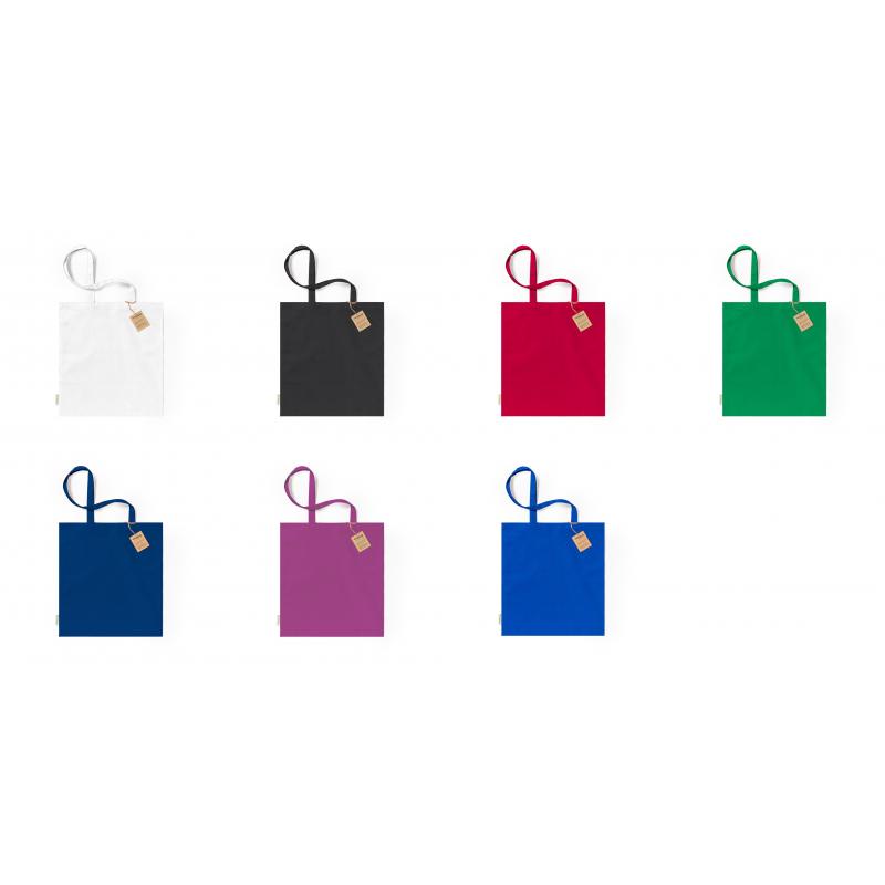 Bolsa fabricada en material100% algodón orgánico de 140g/m2. Con certificación GOTS (Global Organic Textile Standard, ó Norma Mundial de Textiles Orgánicos) que garantiza que los tejidos están hechos de fibras orgánicas. De acabaco cosido, con asas largas reforzadas de 70 cm y disponible en variada gama de colores. Resistencia hasta 8kg, incluida etiqueta con distintivo de algodón orgánico y hangtag en cartón reciclado.