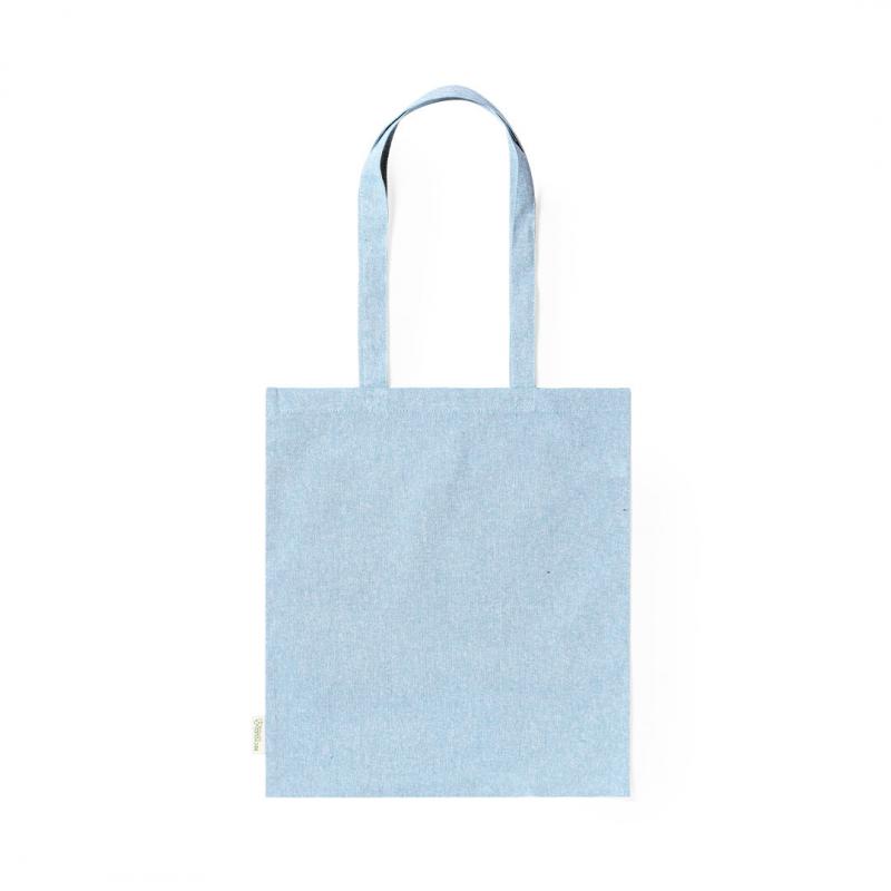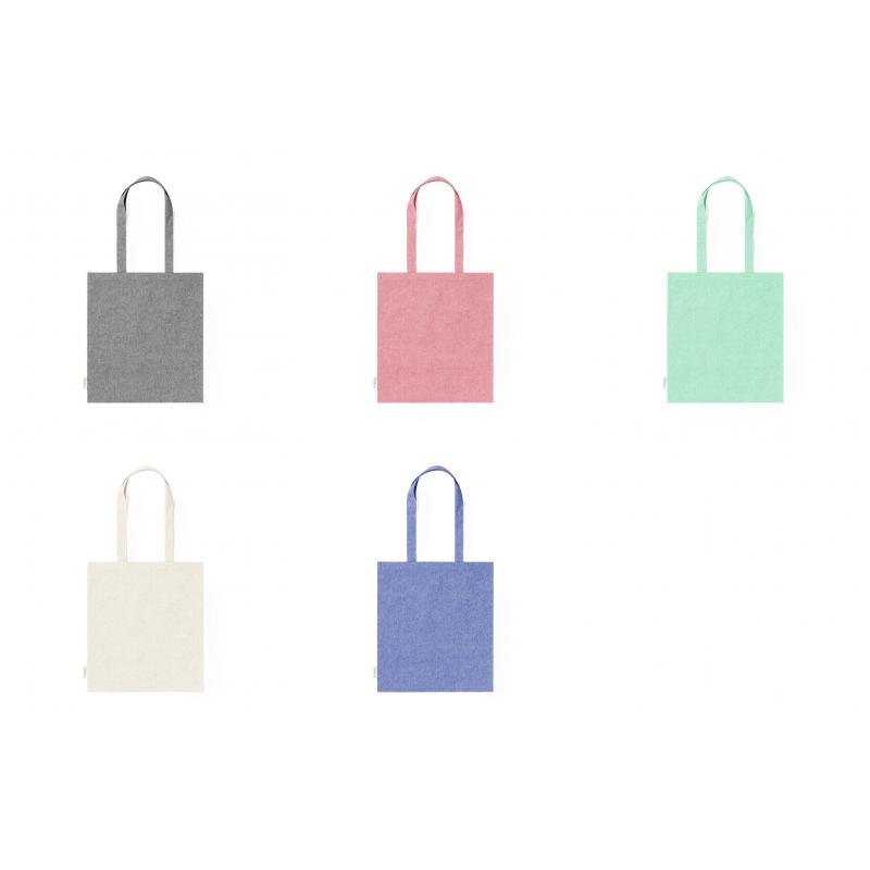Bolsa fabricada en material100% algodón reciclado de 140g/m2. Certificación GRS (Global Recycled Standard / Estándar de Reciclaje Global), que garantiza el origen reciclado del material usado para fabricar el producto. De acabaco cosido, con asas largas reforzadas de 70 cm y disponible en variada gama de colores. Resistencia hasta 8kg, incluida etiqueta con distintivo de algodón reciclado.