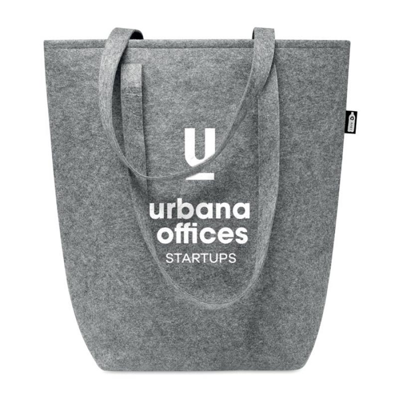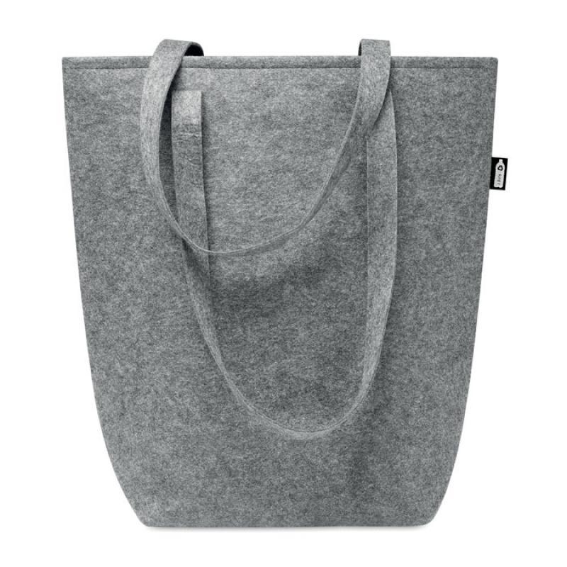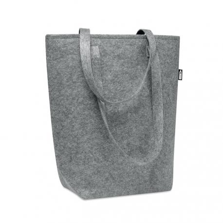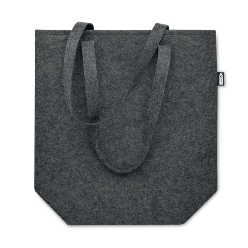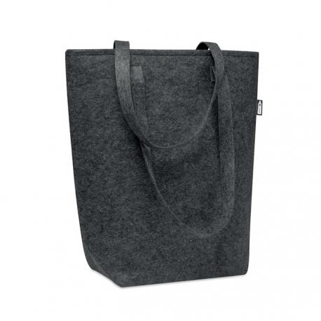 Bolsa de compra de fieltro RPET con asas largas y refuerzos inferiores.