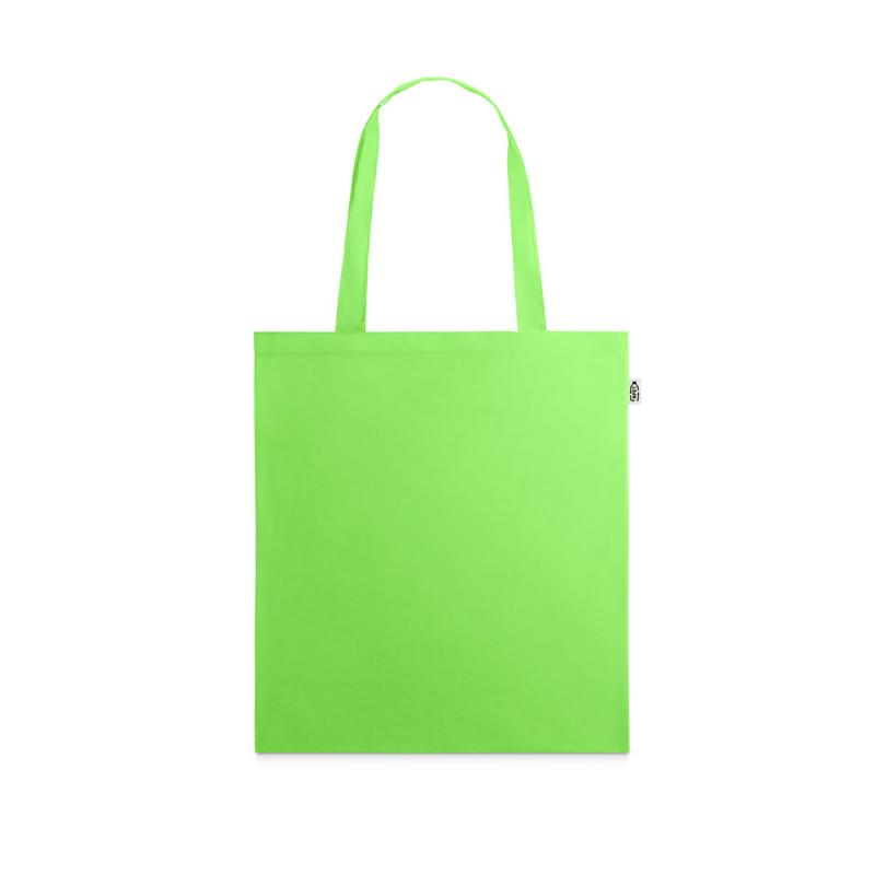 Bolsa 190T rPET. Fabricada a partir de plástico reciclado contribuyendo a la reducción de residuos en el medio ambiente. Asas de 60 cm