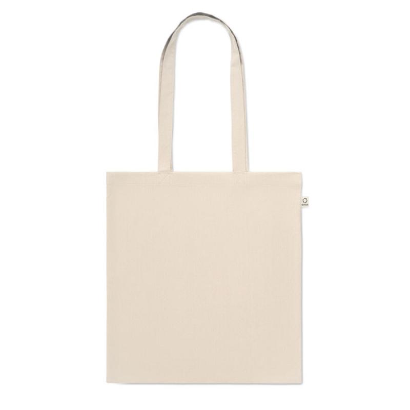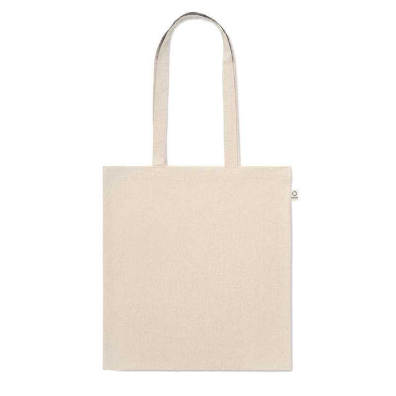 Bolsa de la compra de algodón reciclado preconsumo (70% algodón reciclado y 30% RPET) con asas largas. 140 gr/m².Recipiente :