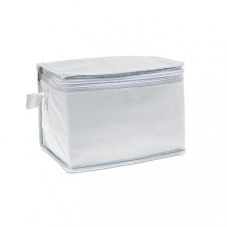 Bolsa enfriadora de papel aluminio para 6 latas. Exterior en non woven con ribetes blancos. 80 gr / m². Material de aislamiento: Espuma con laminado de papel de aluminio. Capacidad 3L.
