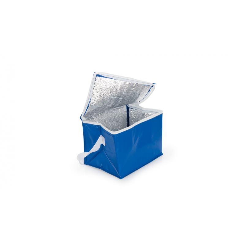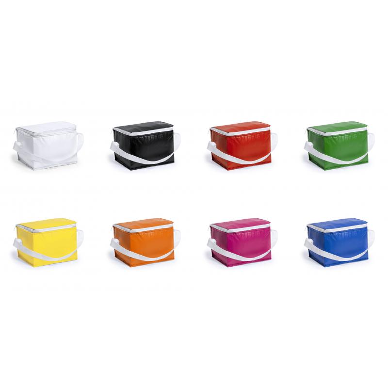 Nevera fabricada en resistente PVC. Con compartimento de 3,2L de capacidad, cierre de cremallera y con cinta bandolera ajustable. Interior isotermo acabado en aluminio. Disponible en variada y llamativa gama de colores.