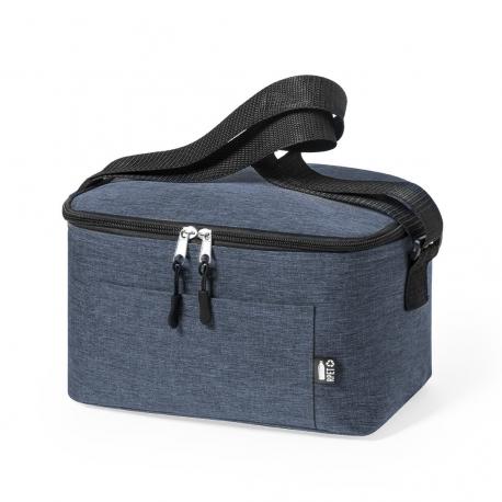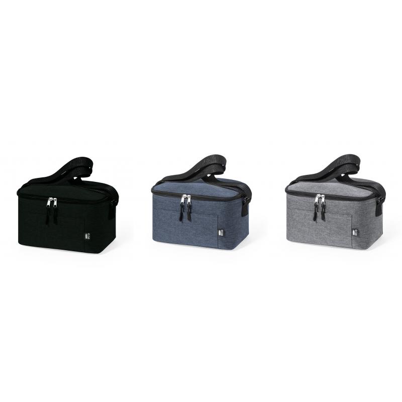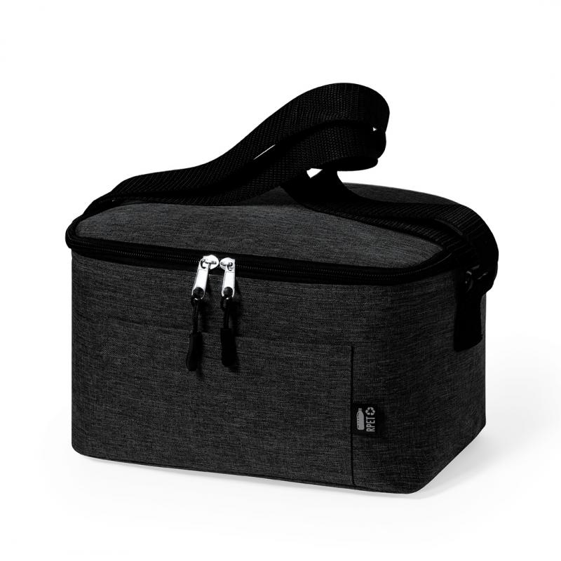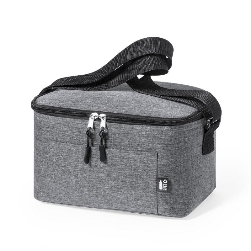 Nevera de línea nature y en resistente poliéster 600D RPET efecto melange, elaborado a partir de plástico reciclado para así fomentar la reutilización de residuos plásticos y contribuir a la sostenibilidad del planeta. Detalles en negro y base reforzada. Compartimento principal con cierre de cremallera e interior en aluminio. Incluye bolsillo exterior y cinta bandolera ajustable, con distintivo RPET en etiqueta exterior.
