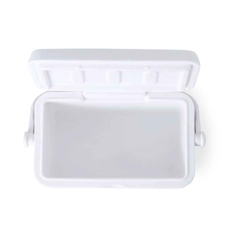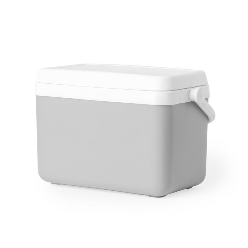 Nevera fabricada en PP de 4L. Atractivo diseño vintage para mantener bebidas y alimentos fríos, de diseño rígido con doble pared. Tapadera de bisagra con cierre de seguridad y asa rígida para un fácil transporte. Con base de color gris y accesorios en blanco. Presentada individualmente en bolsa reciclada.