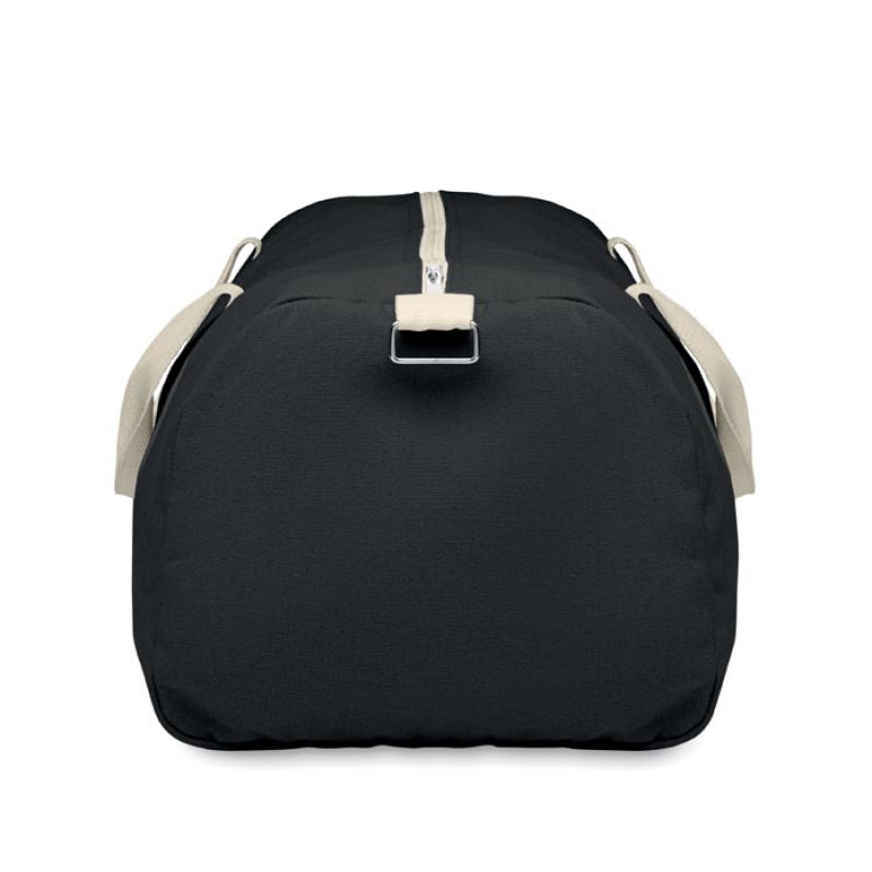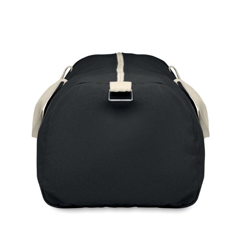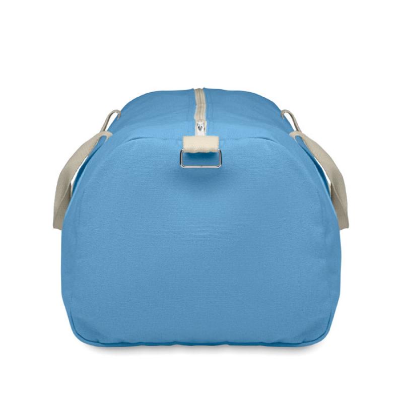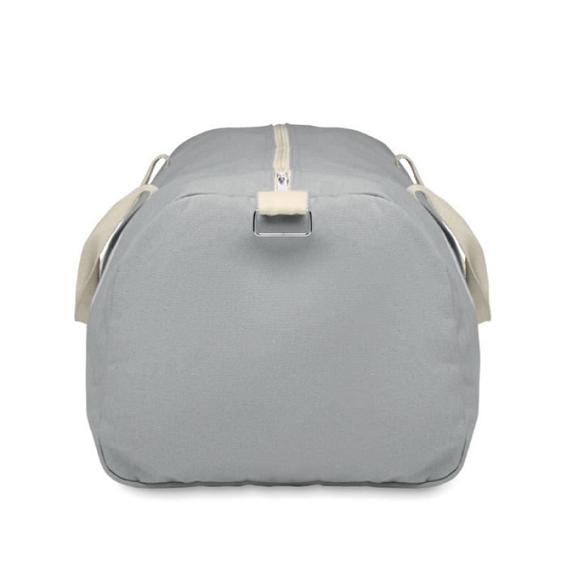 Bolsa de viaje en tejido reciclado (60% algodón reciclado, 40% poliéster reciclado) de 320 gr/m² con asas y cinta de algodón natural. Bandolera ajustable y desmontable.Recipiente :
